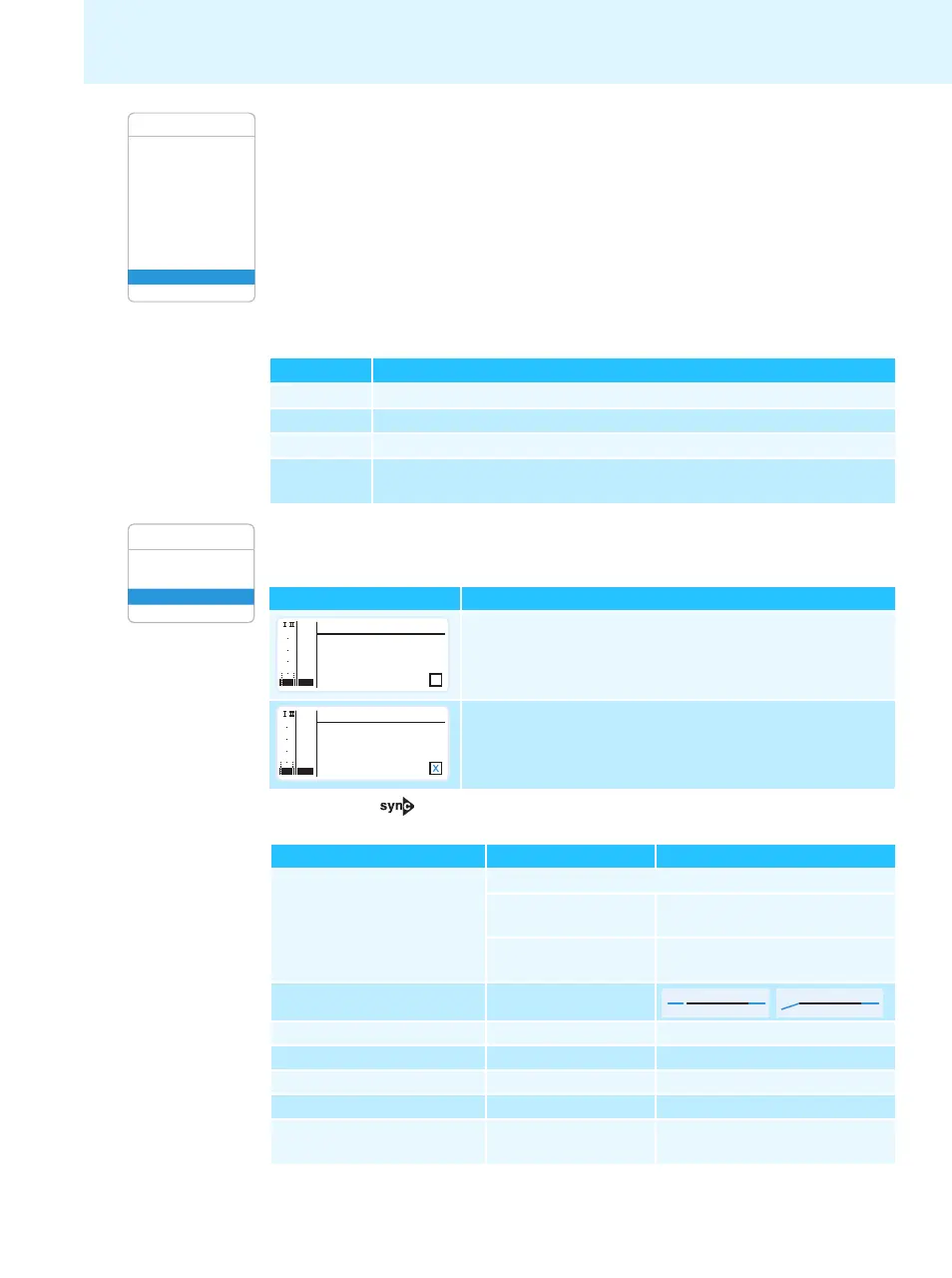 Exit Exits the “Sync Settings” submenu and returns to the extended menu