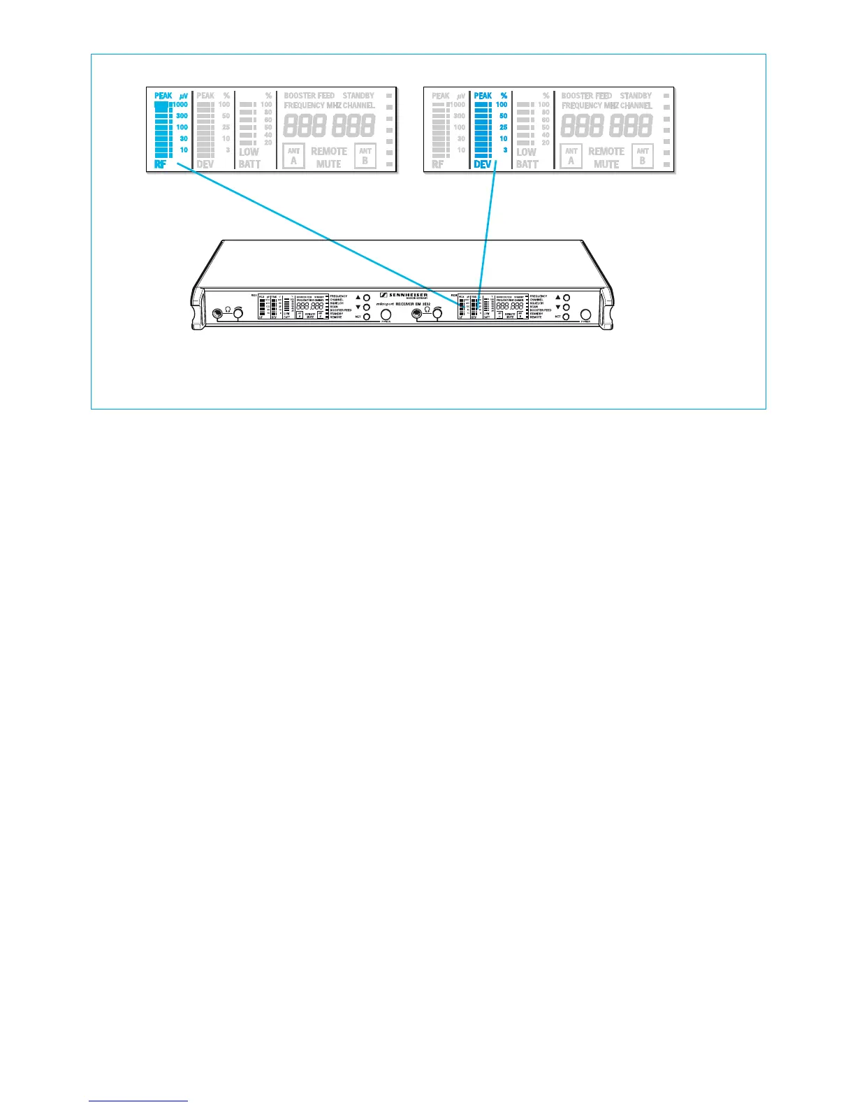 overmodulation display. If the signal is too high, “PEAK” lights up briefly. Short overmodulation is