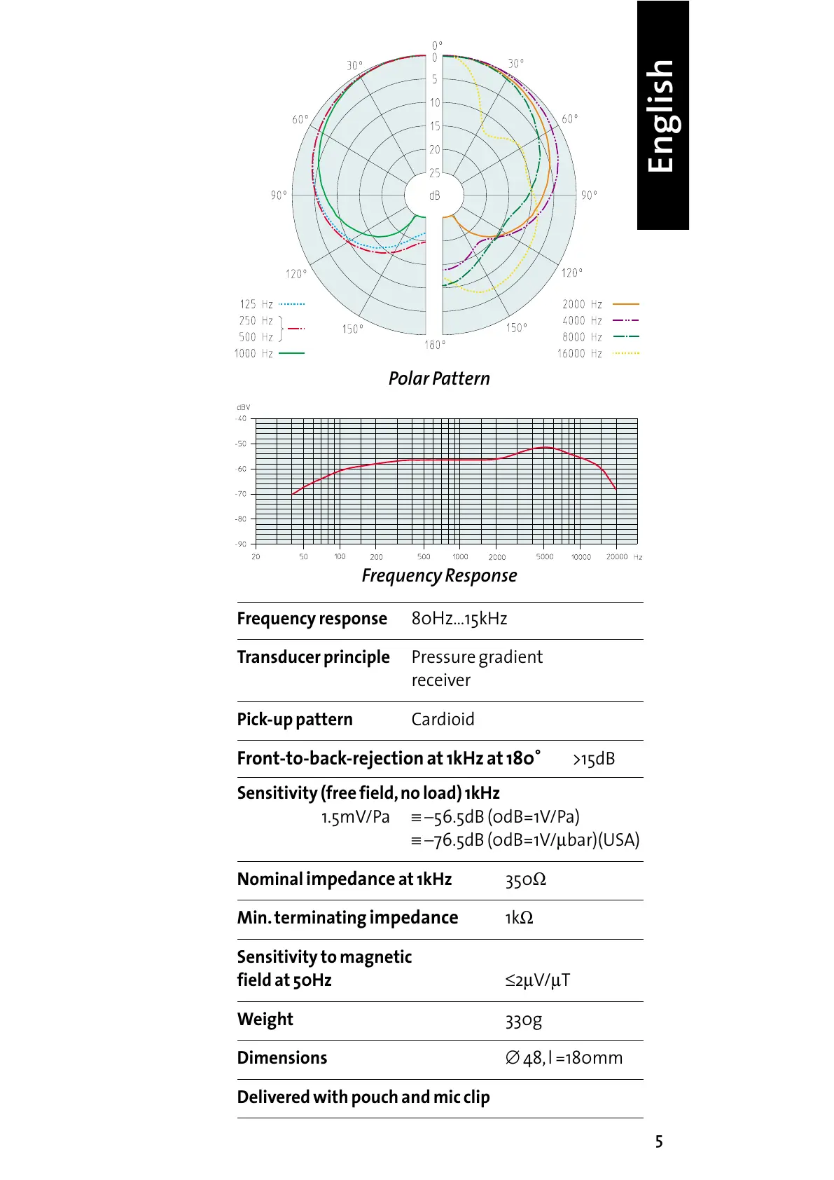 1.5mV/Pa ≡ −56.5dB (0dB=1V/Pa)