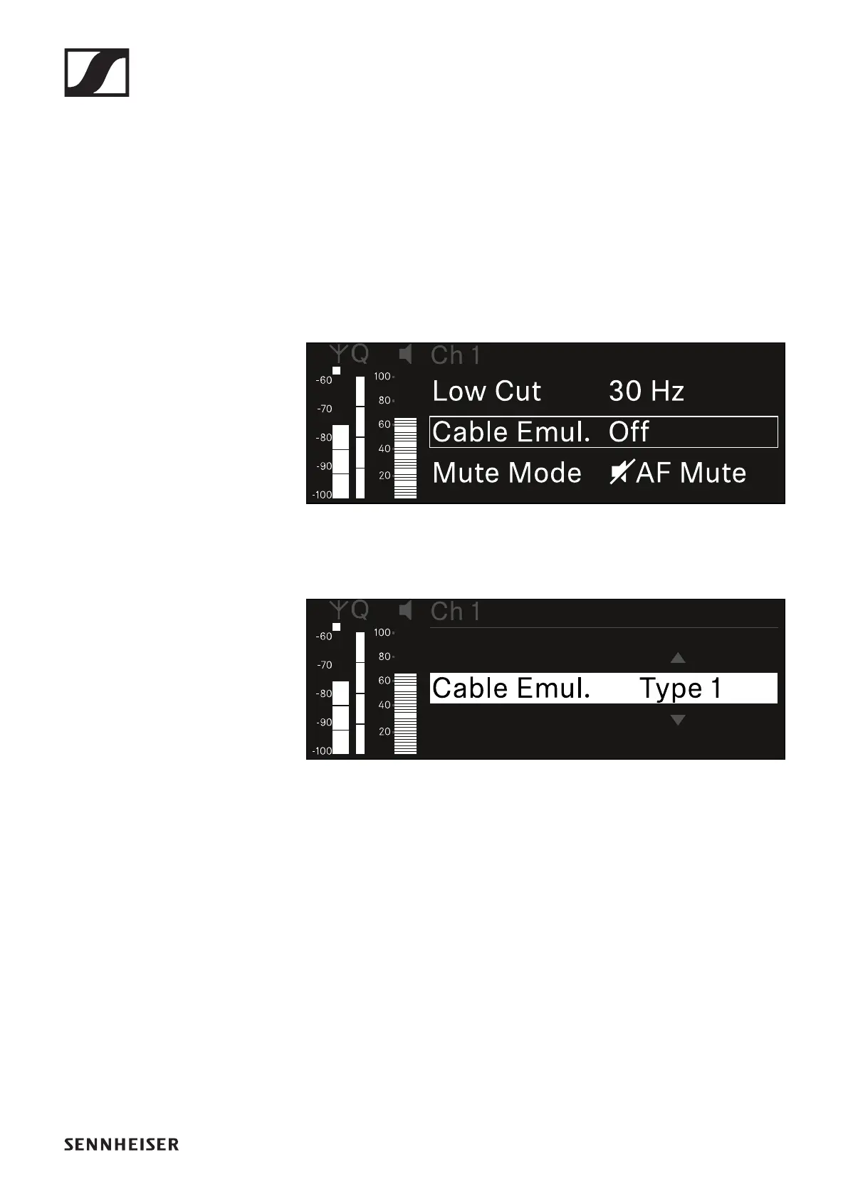 Ch 1 / Ch 2 -> Cable Emul. menu item