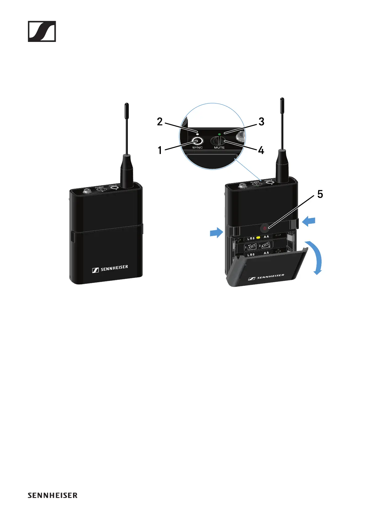 • See „Switching the bodypack transmitter on and off“