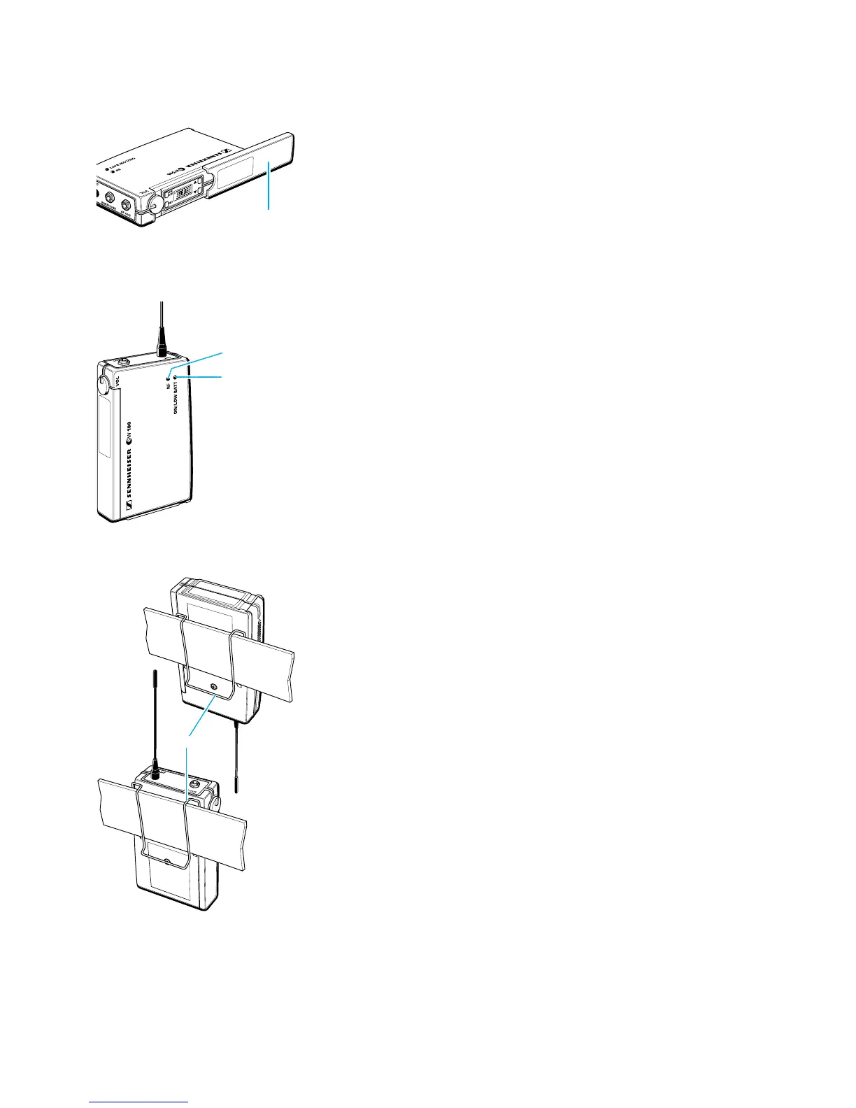 Il ricevitore EK 100 può essere fissato per esempio alla cintura con la clip /.