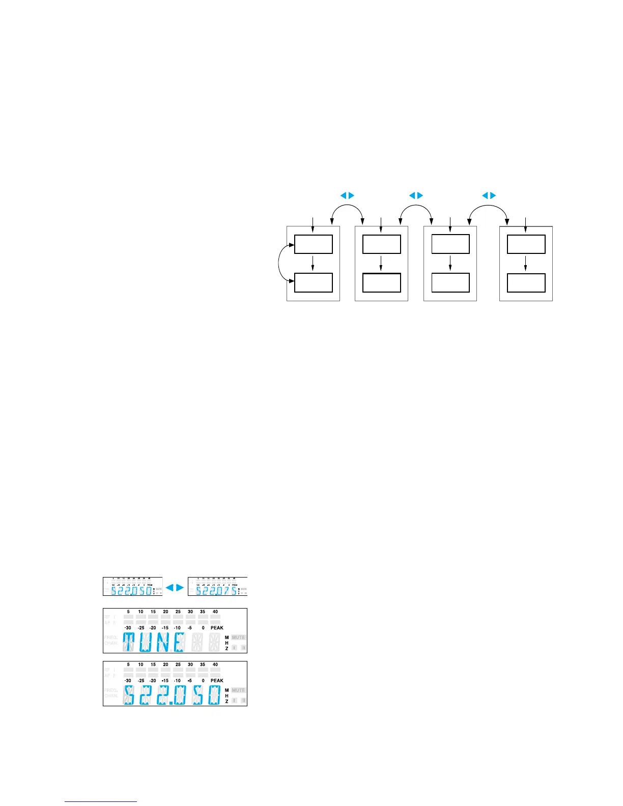 eerst de melding “TUNE” en aansluitend de frequentie-instelling van