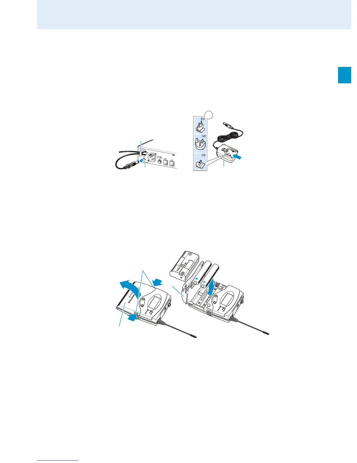For powering the bodypack transmitter, you can either use two 1.5 V AA size batteries or the