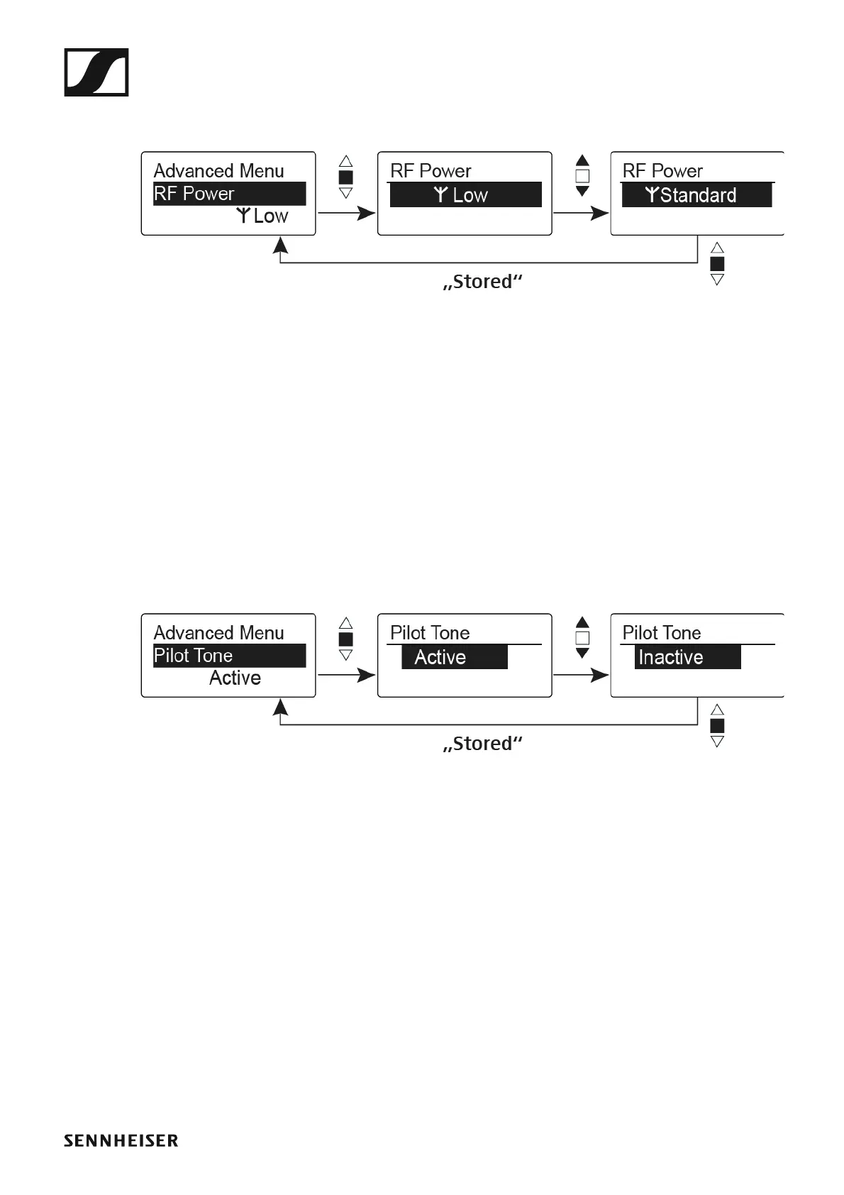 • Activating/deactivating pilot tone transmission