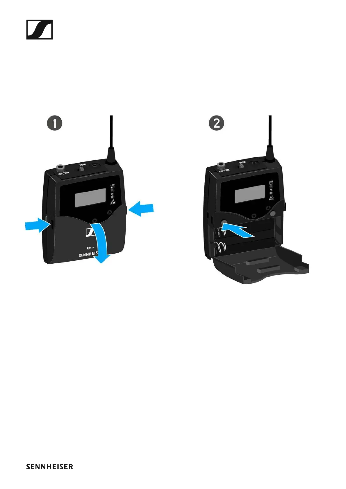 ▷ Hold down the ON/OFF button until the Sennheiser logo appears on the