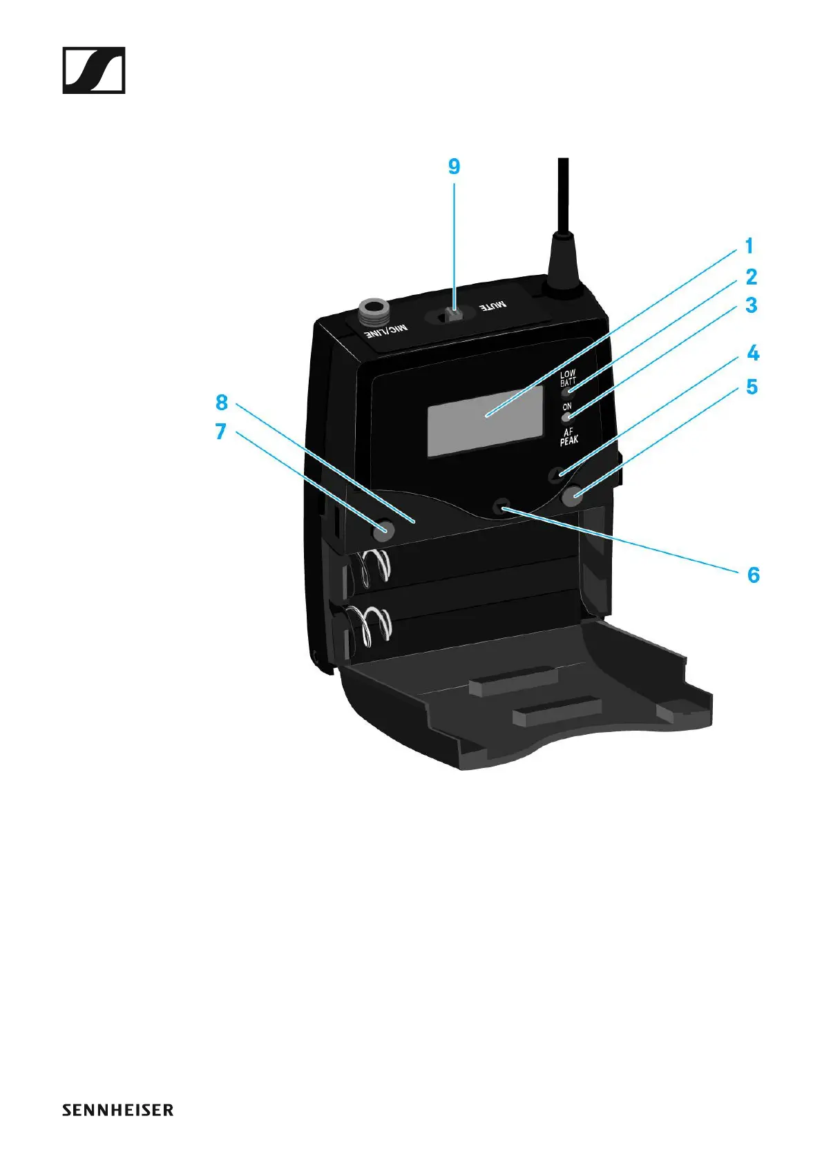 Operating elements of the SK 500 G4 bodypack