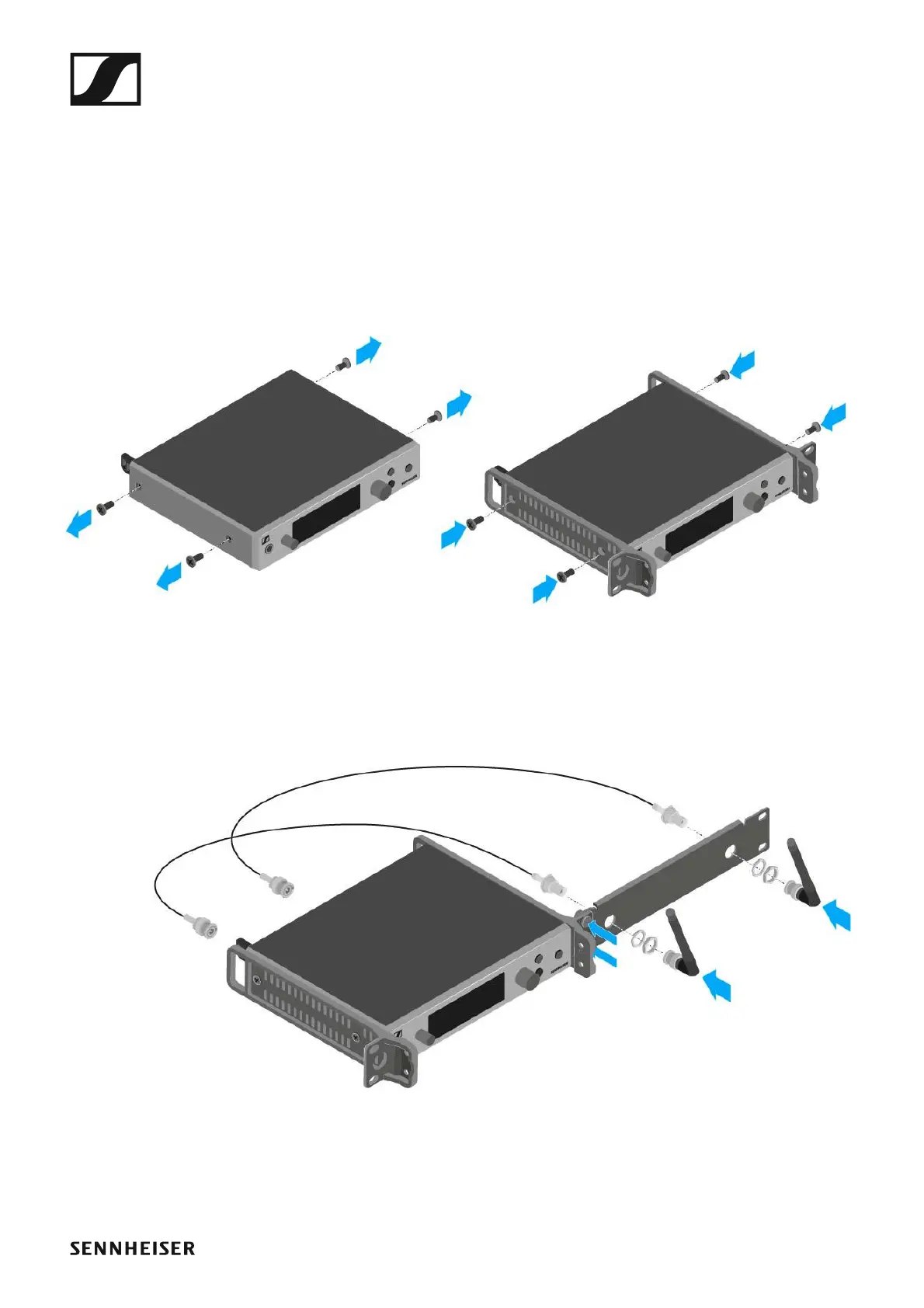 ▷ Secure both of the the mounting angles to the sides of the receiver us-