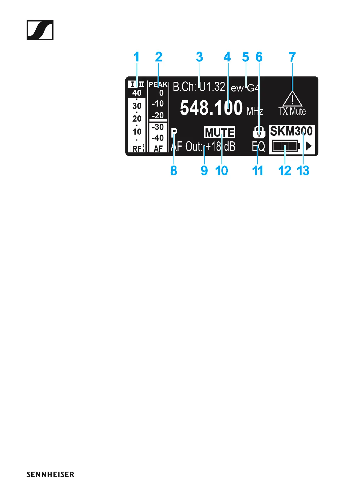 • Displays the audio level of the received transmitter