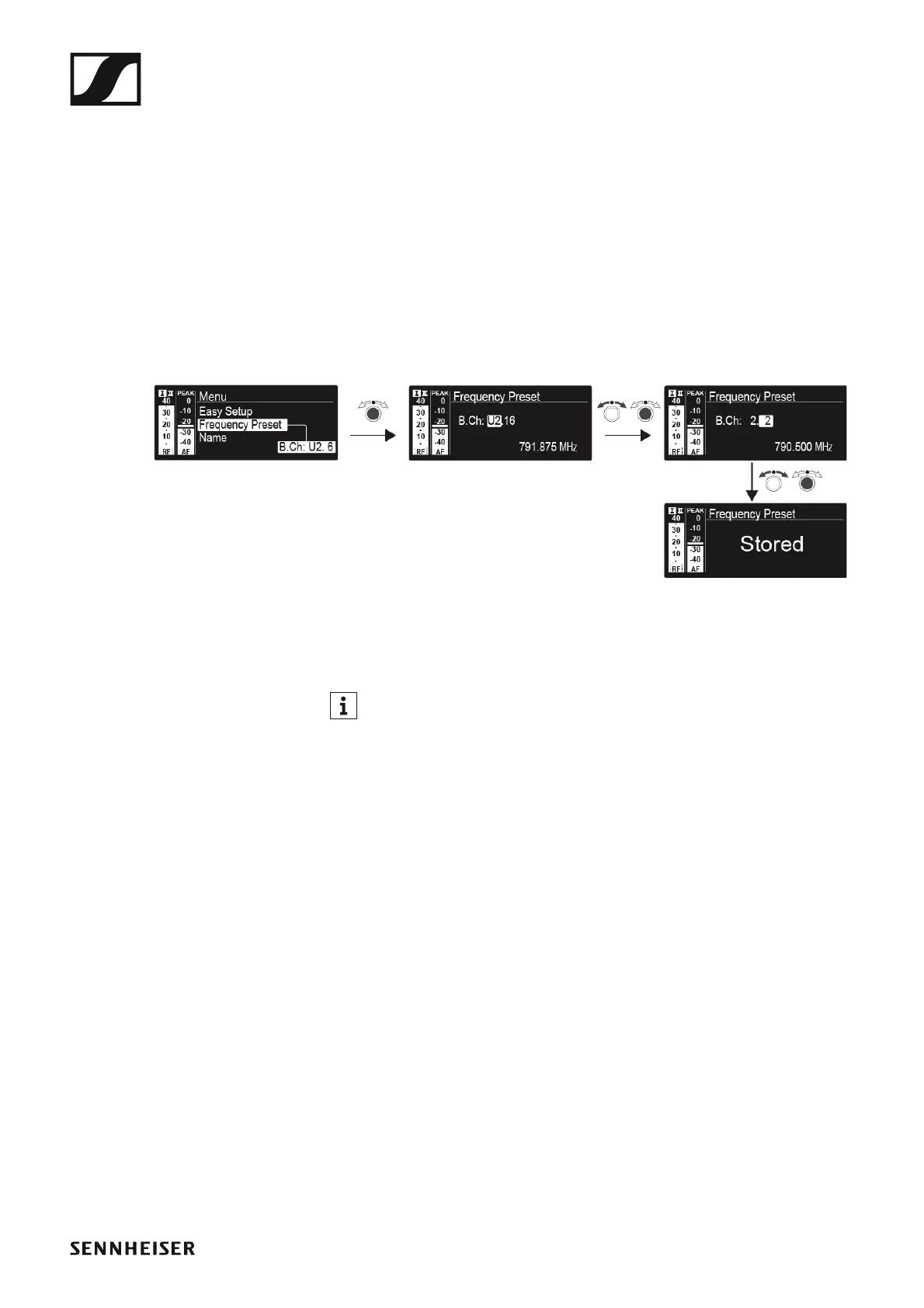 In the Frequency Preset menu item, you can adjust the receiving frequen-