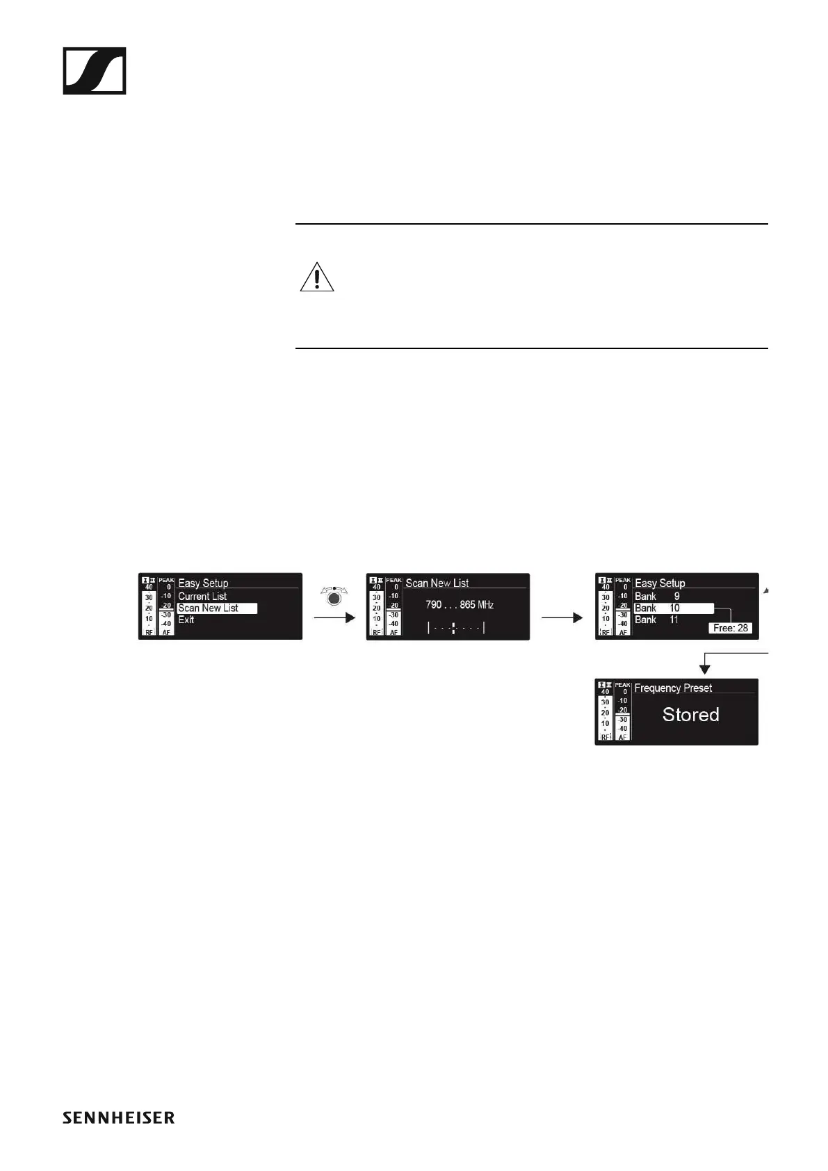 ▷ Turn the jog dial to select an unused frequency from the selected bank.