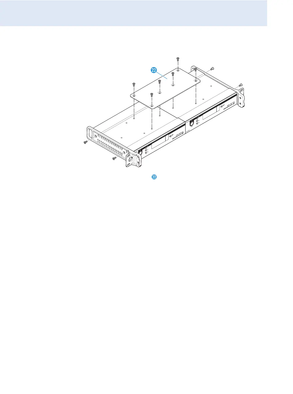 왘 Secure the rack mount “ears” to the receivers in the same way as