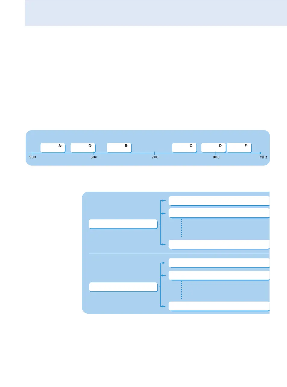Each frequency range (A–E, G) offers 21 frequency banks with up to