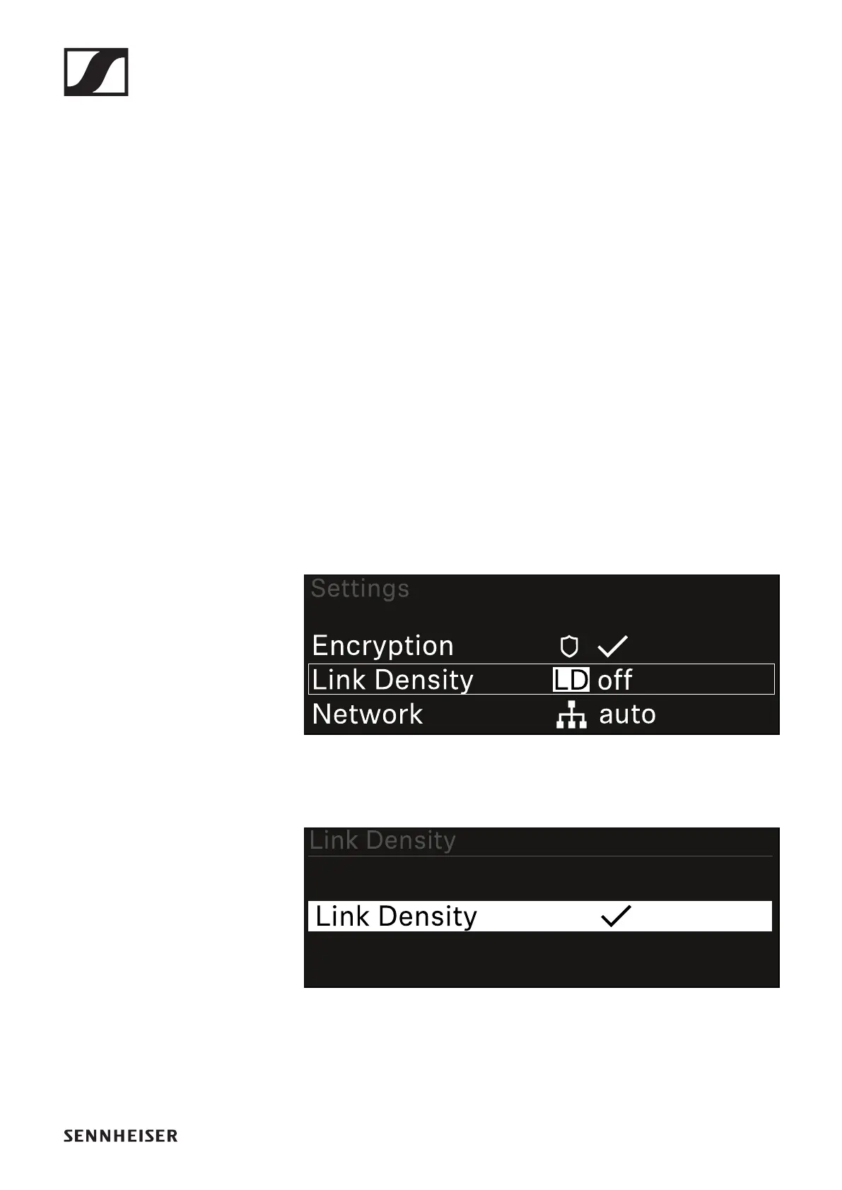 ▷ In the System menu, navigate to the Link Density menu