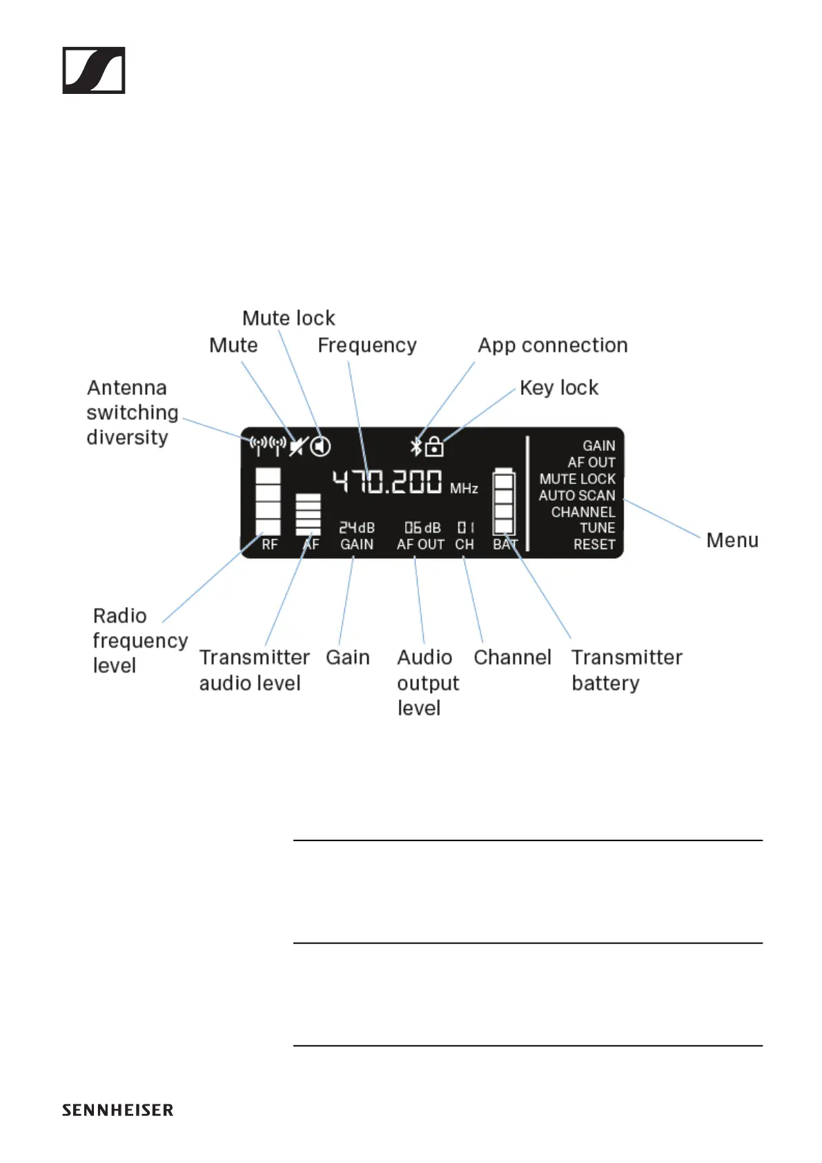 Mute / mute lock: „MUTE LOCK menu item“ | „Muting the