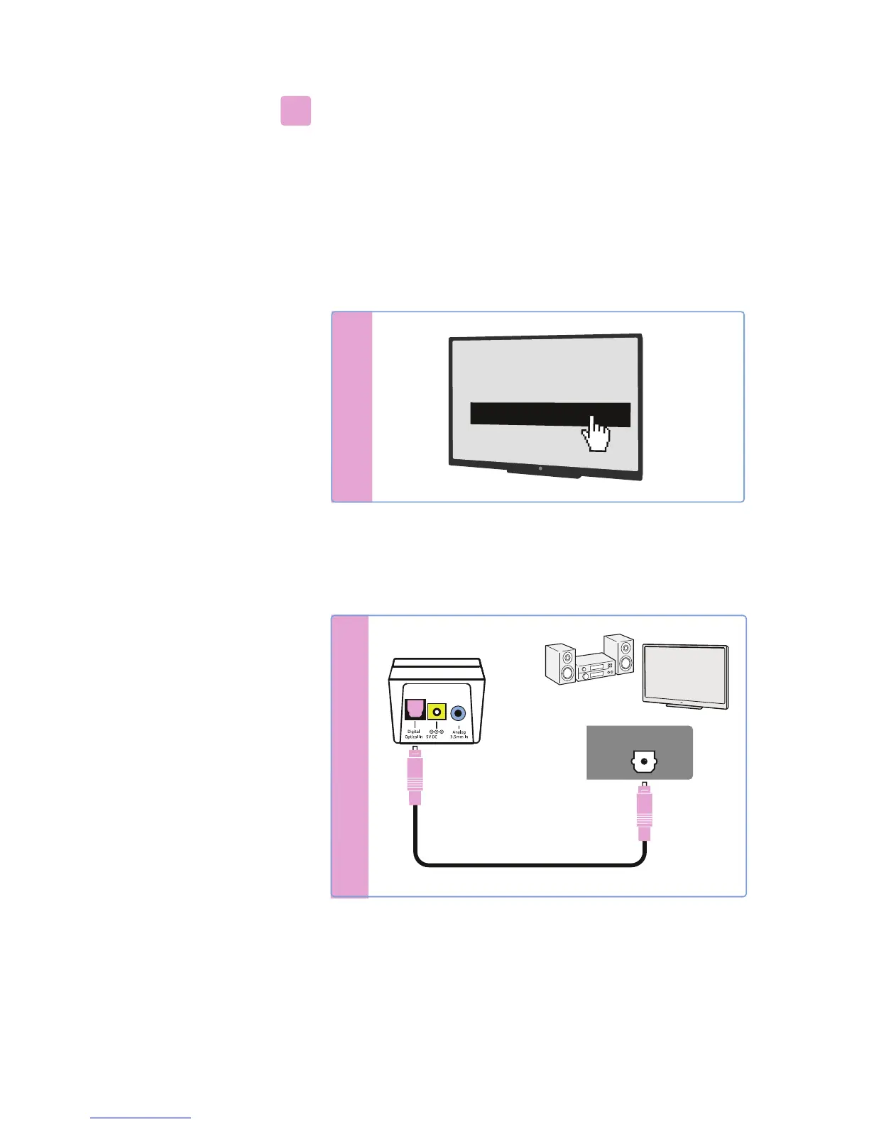 왘 Connect the optical digital cable to the pink Digital Optical In