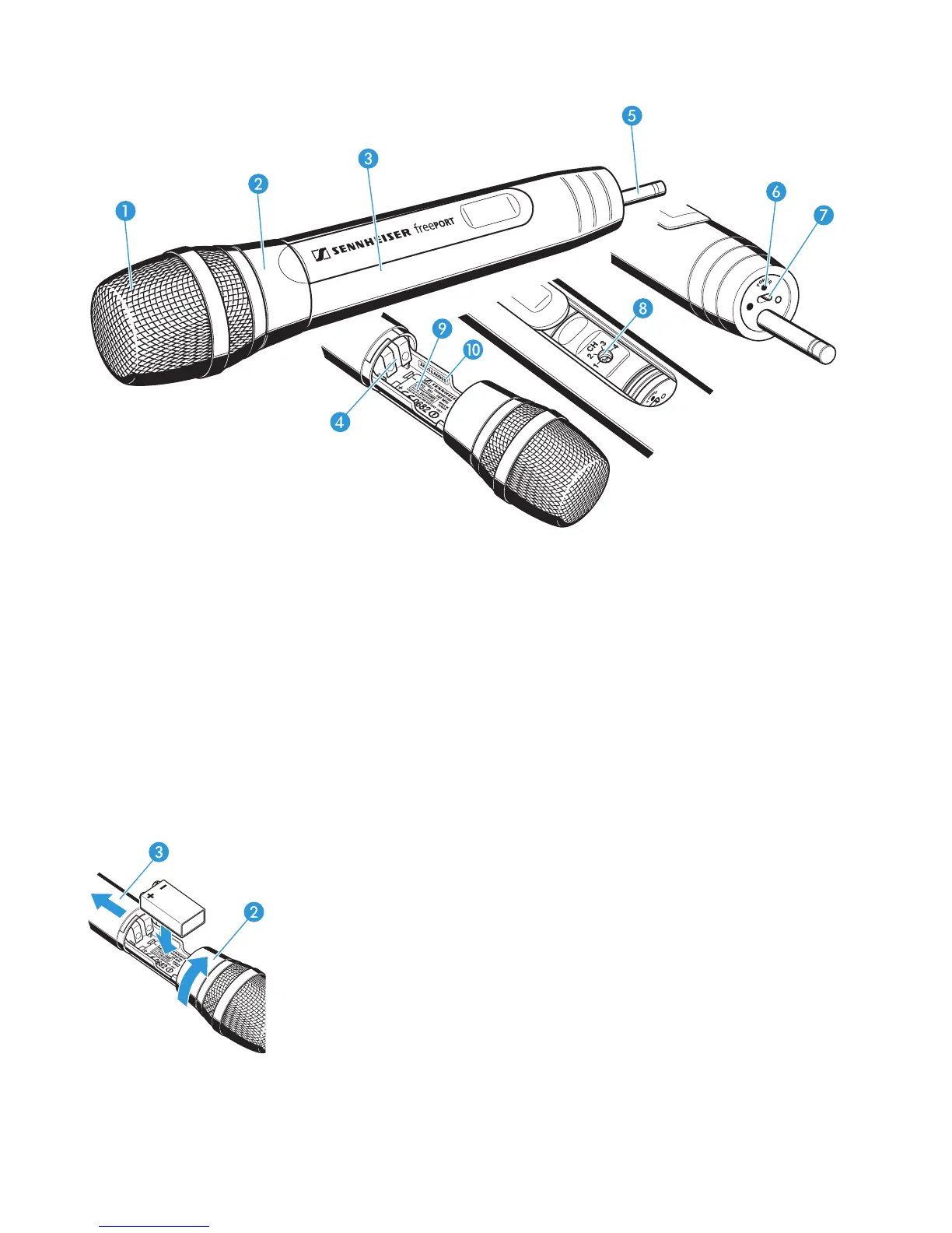 왘 Pull the body of the radio microphone in the direction of the