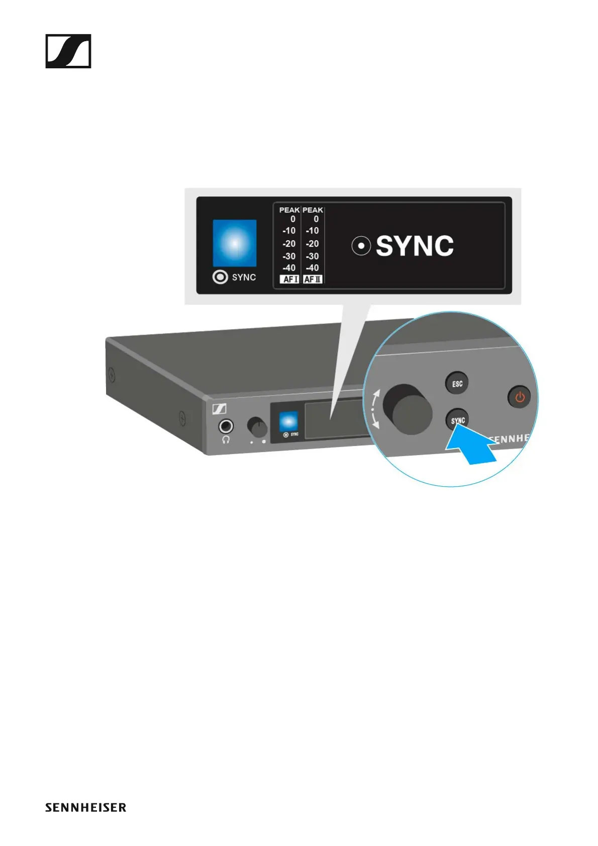 Sync appears in the transmitter’s display and the blue LED turns blue.