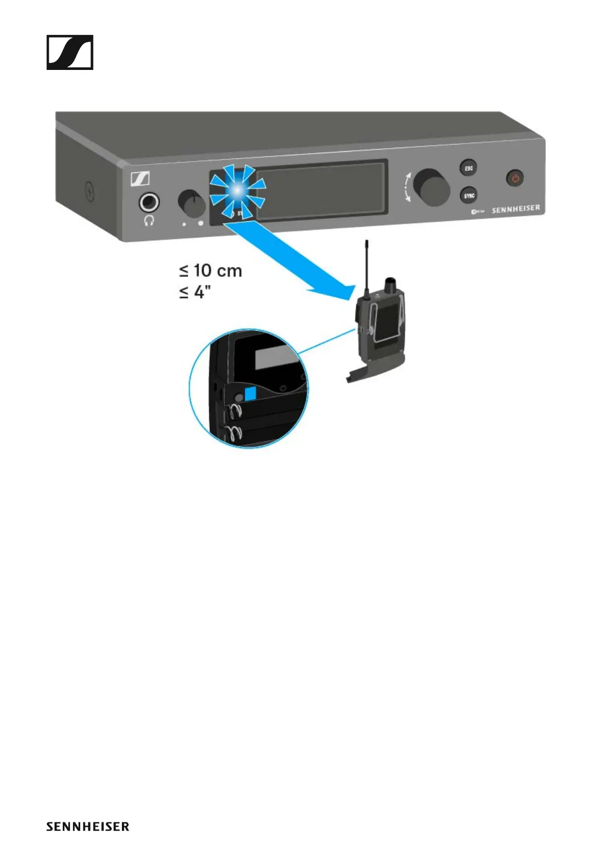 ▷ Hold the infra-red interface of the receiver in front of the infra-red in-
