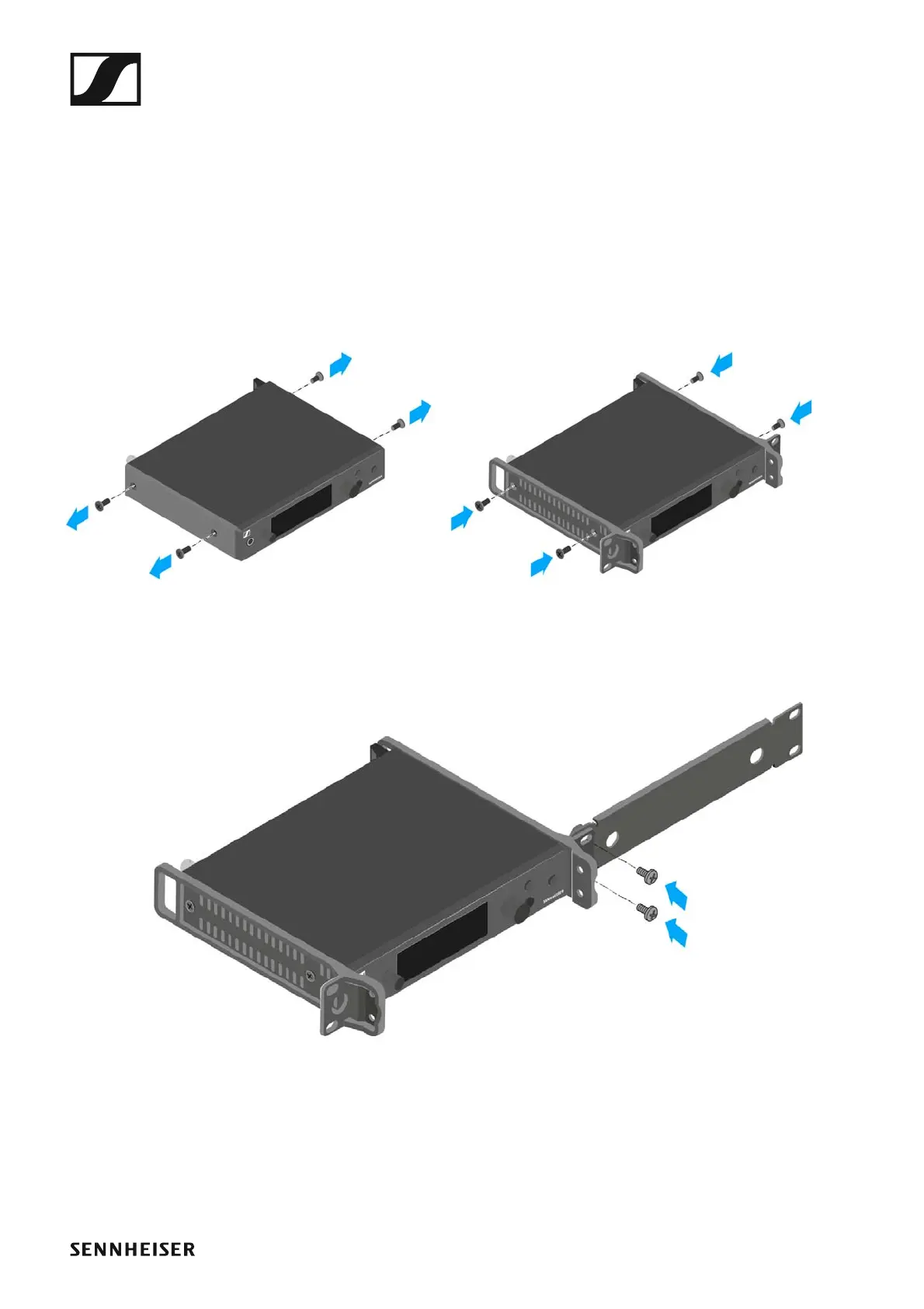 ▷ Secure the left and right mounting angles to the sides of the transmitter