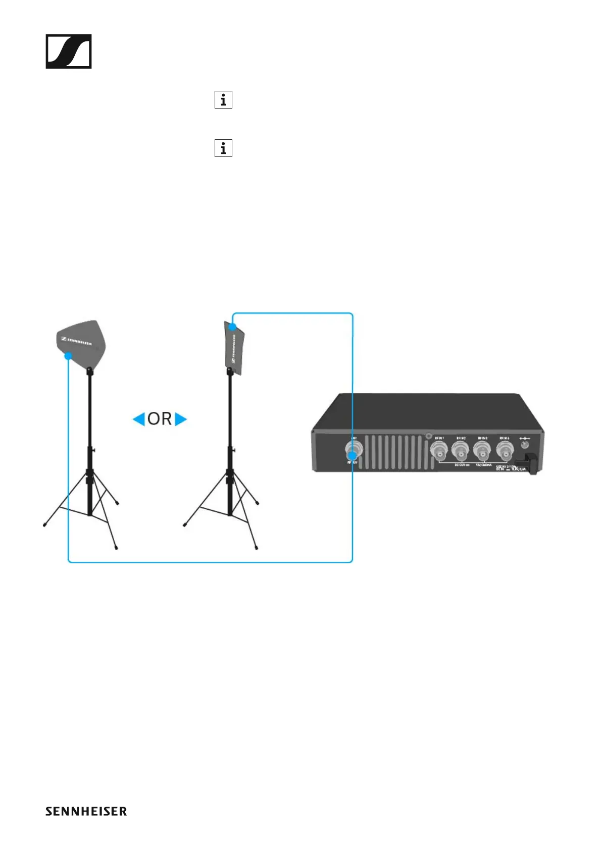 ▷ Connect the antenna and transmitter with a low-attenuation 50-Ω ca-