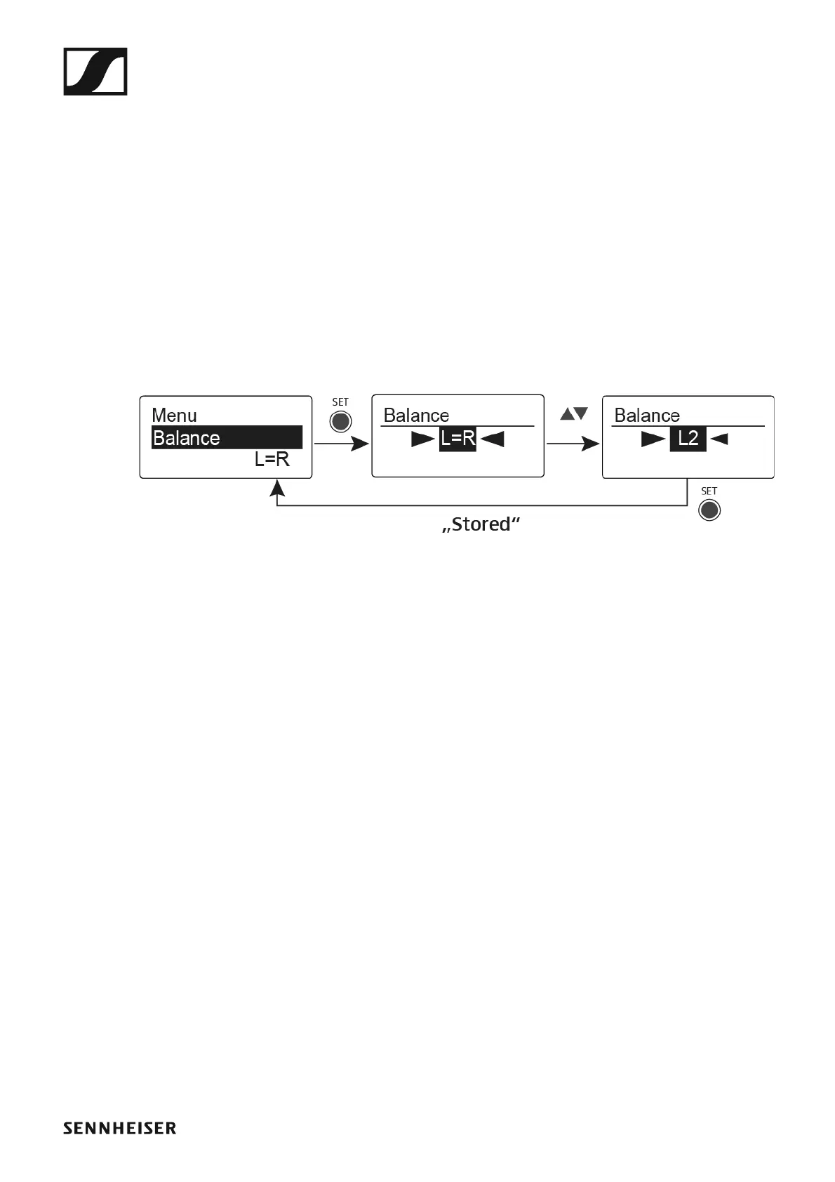 ▷ Press the UP or DOWN button until the Balance menu item appears in