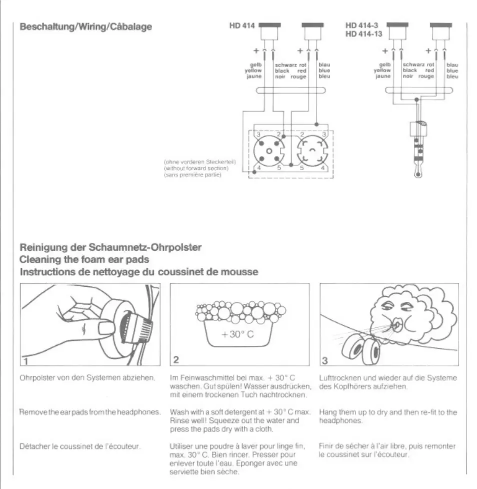 Sennheiser HD 414 - Wiring; Cleaning the Foam Ear Pads