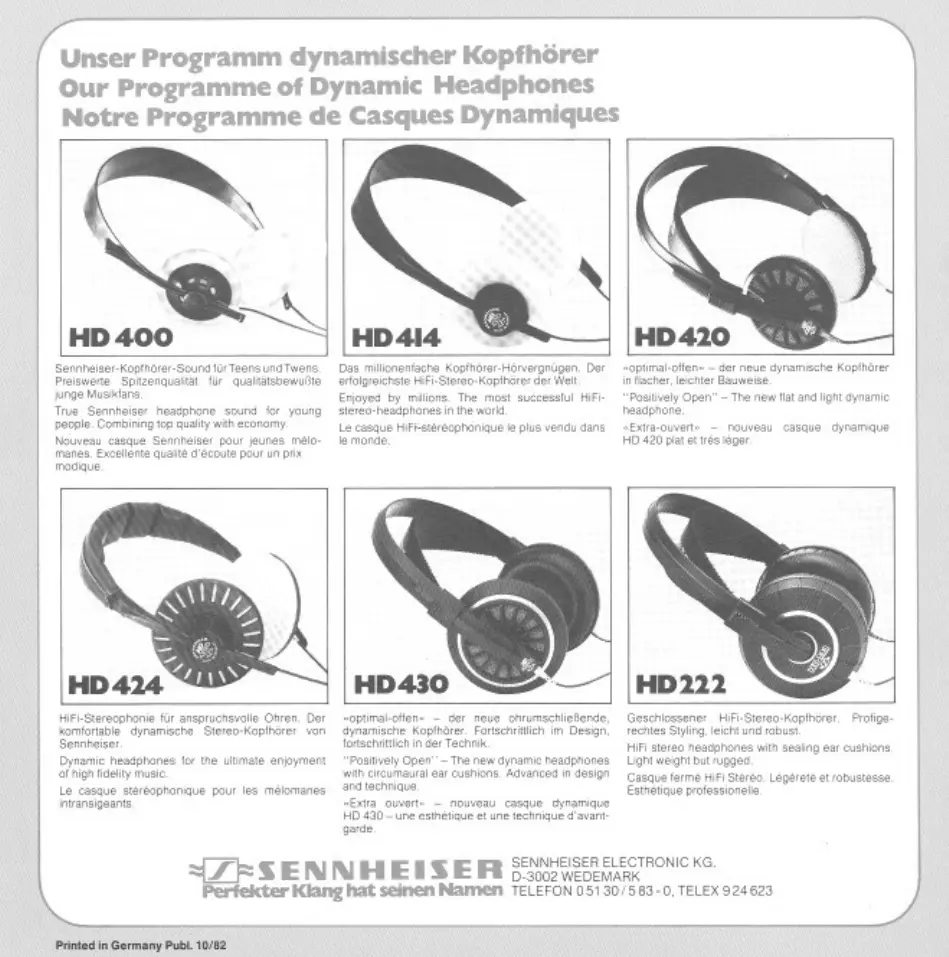 Sennheiser HD 424 - Sennheiser Dynamic Headphones Program; HD 400 Headphones; HD 414 Headphones; HD 420 Headphones