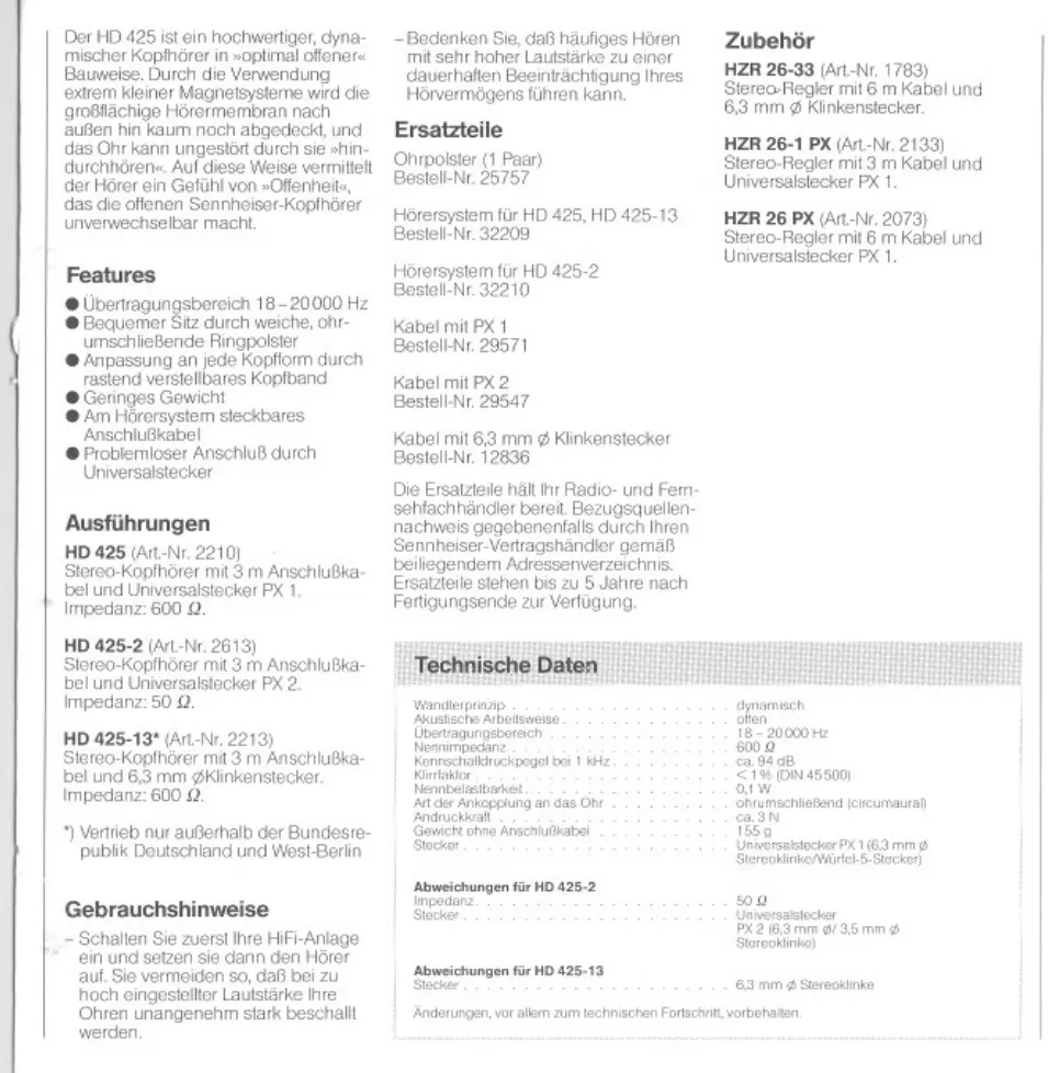 Sennheiser HD 425 - Page 3