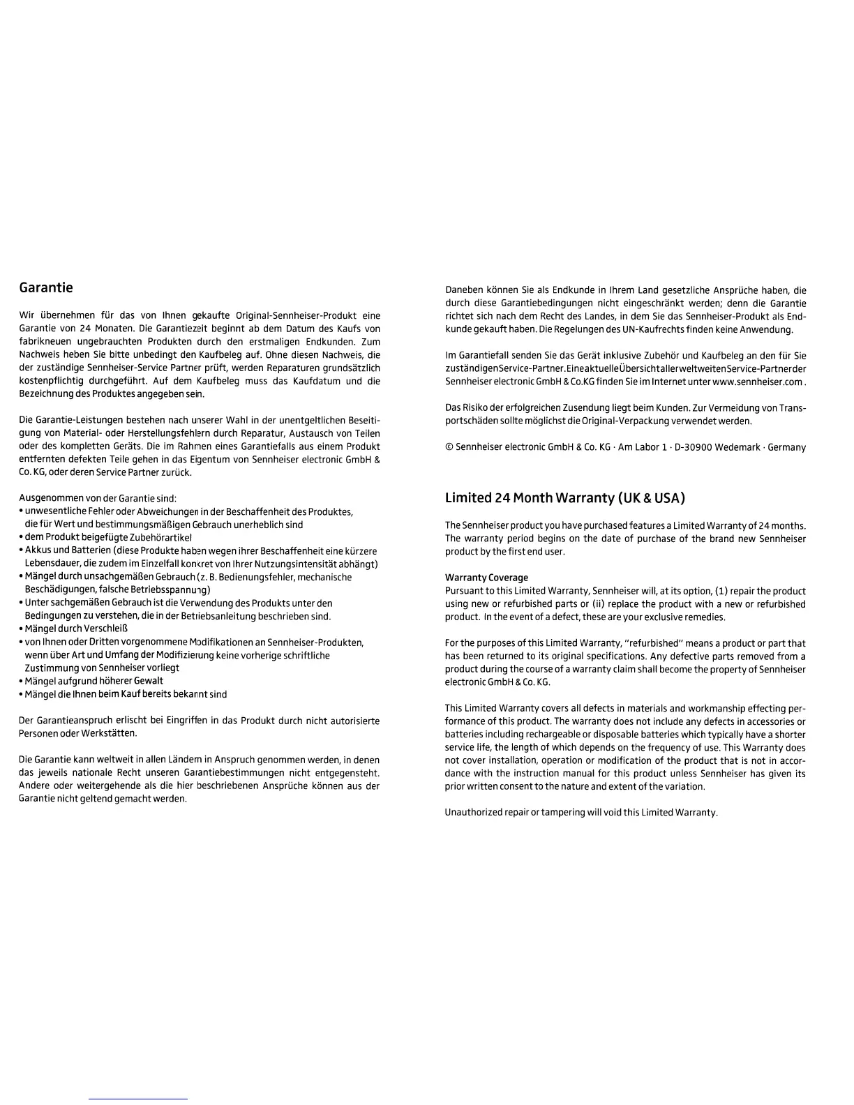 Sennheiser productyou have purchased features a Limited Warranty
