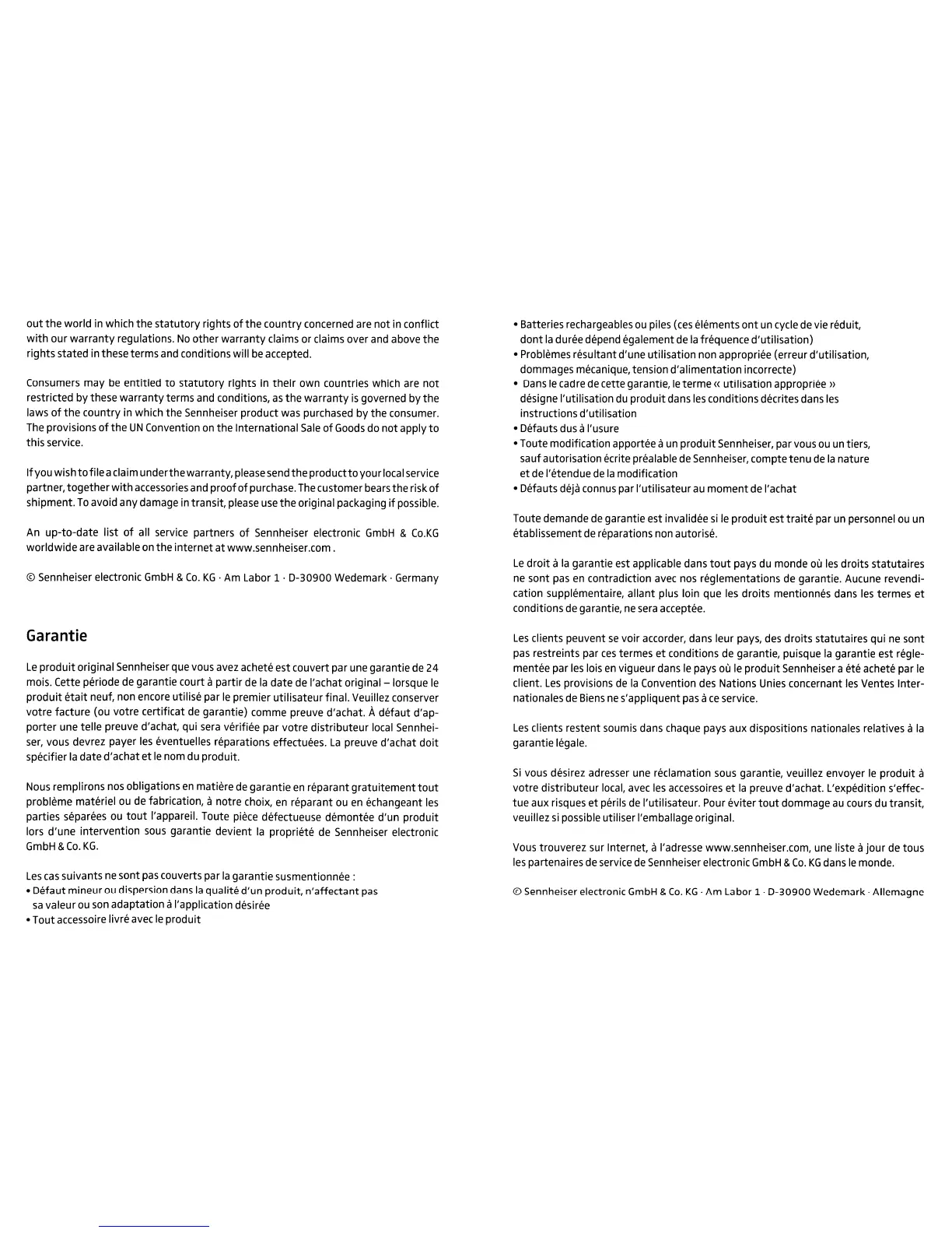 original Sennheiser que vous avez achete est couvert par une garantie de 24