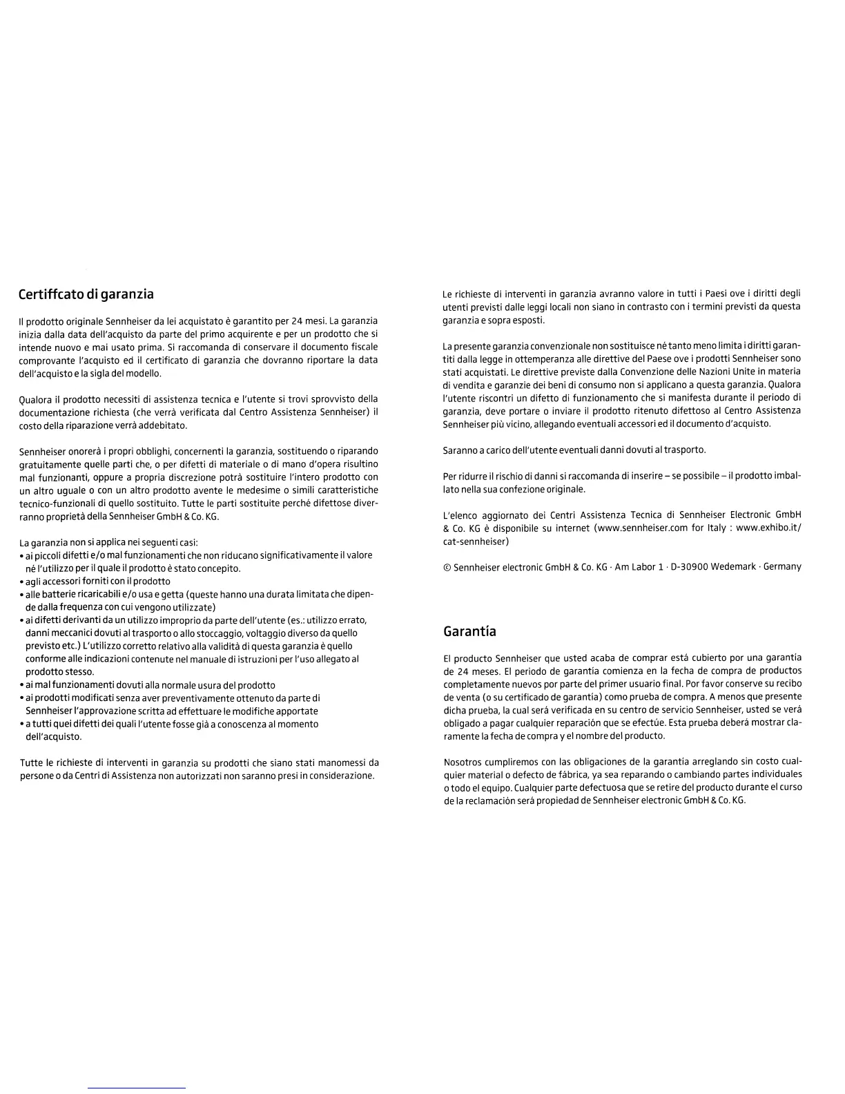 documentazione richiesta (che verra verificata dal Centro Assistenza Sennheiser)