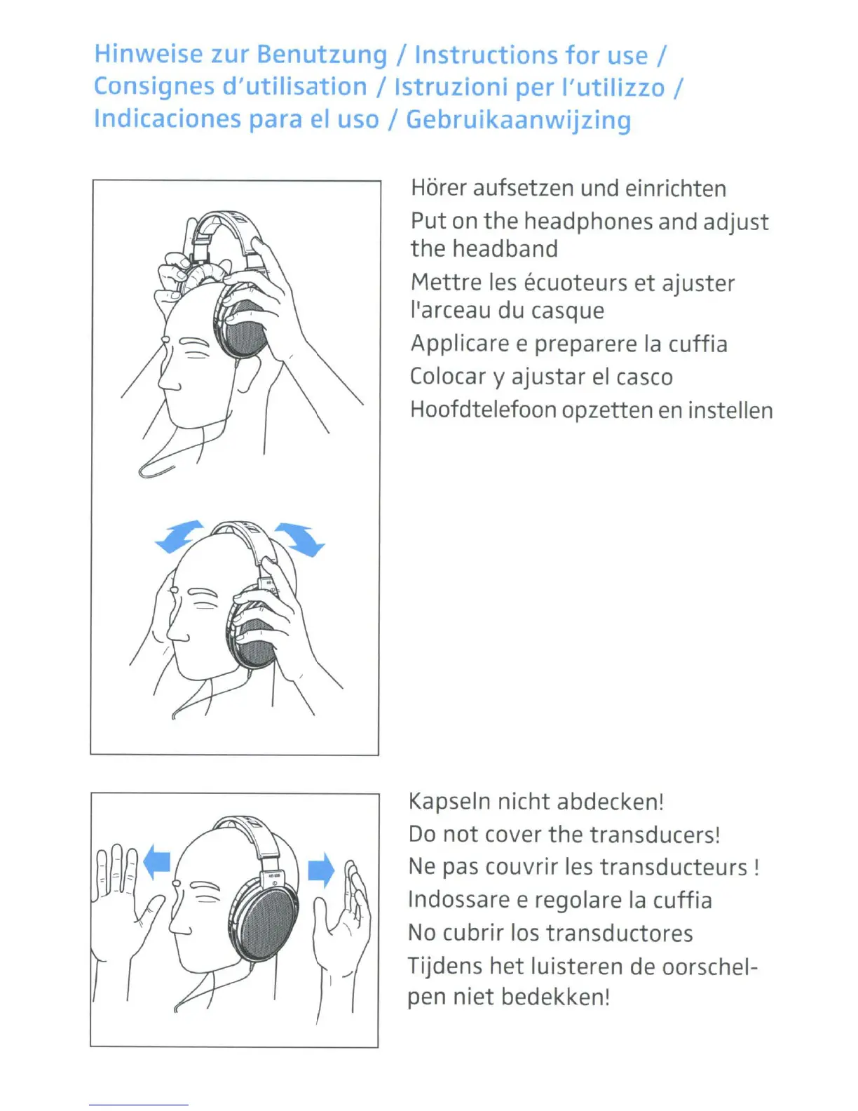 Sennheiser HD 650 - Usage Instructions; Proper Wearing and Adjustment; Transducer Protection