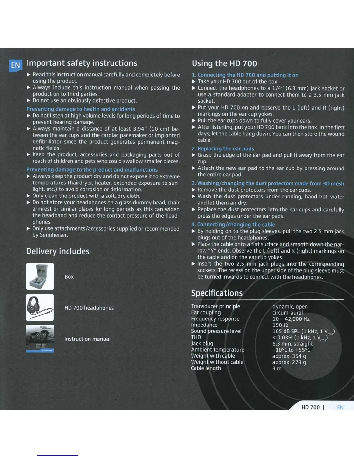 Sennheiser HD 700 - Important Safety Instructions; Preventing Health Damage and Accidents; Preventing Product Damage and Malfunctions; Using the HD 700