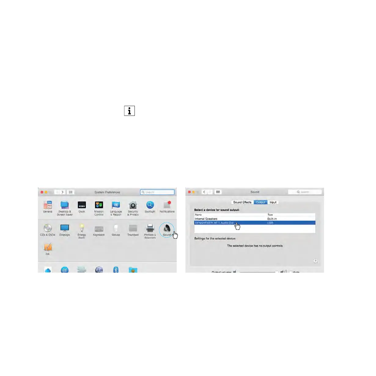 ▷ From the System Preferences, select “Sound” and then select “Sennheiser