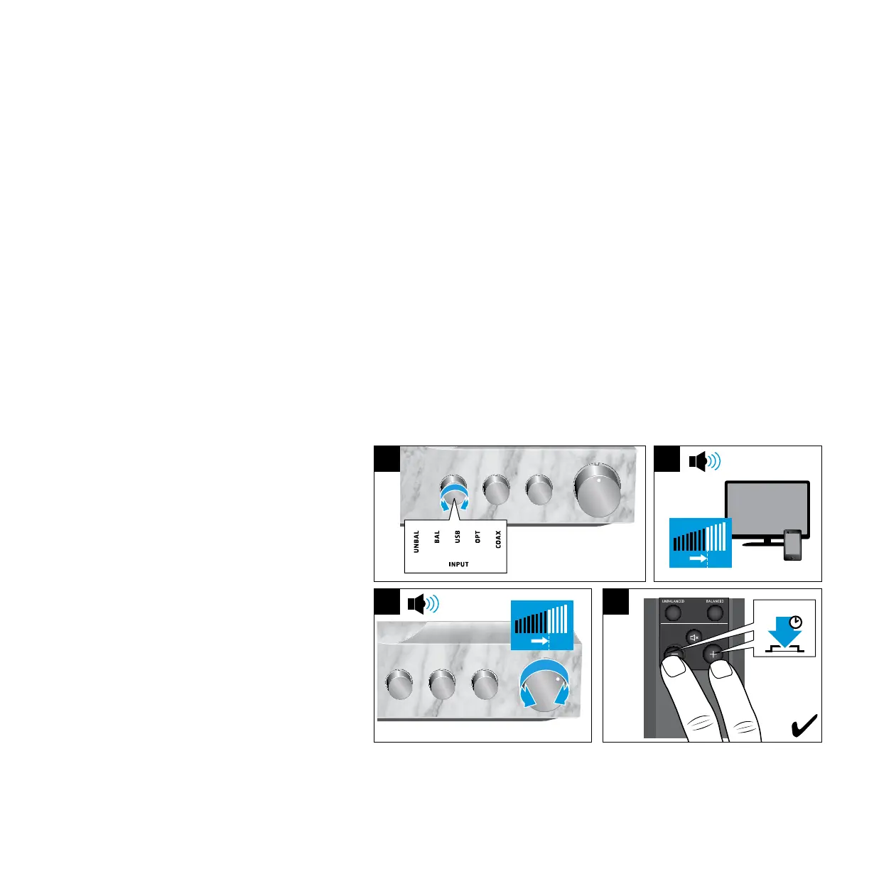 1. Select the desired INPUT audio source and start playing music from the