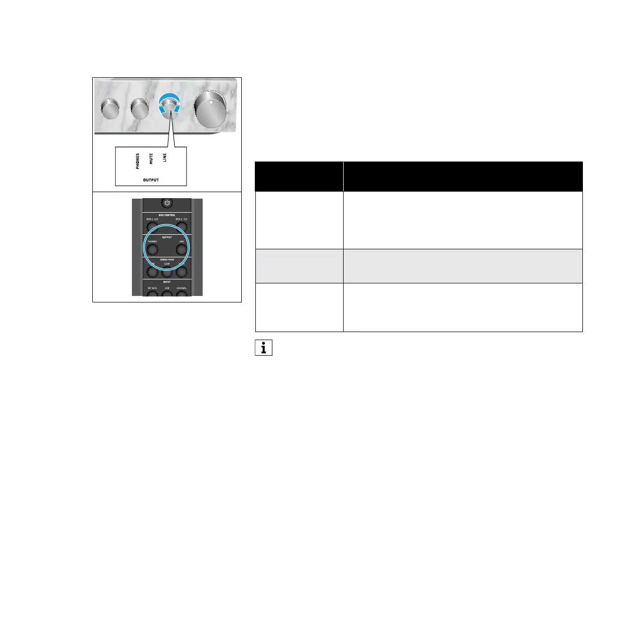 ▷ Turn the OUTPUT rotary switch until the desired audio output points to the