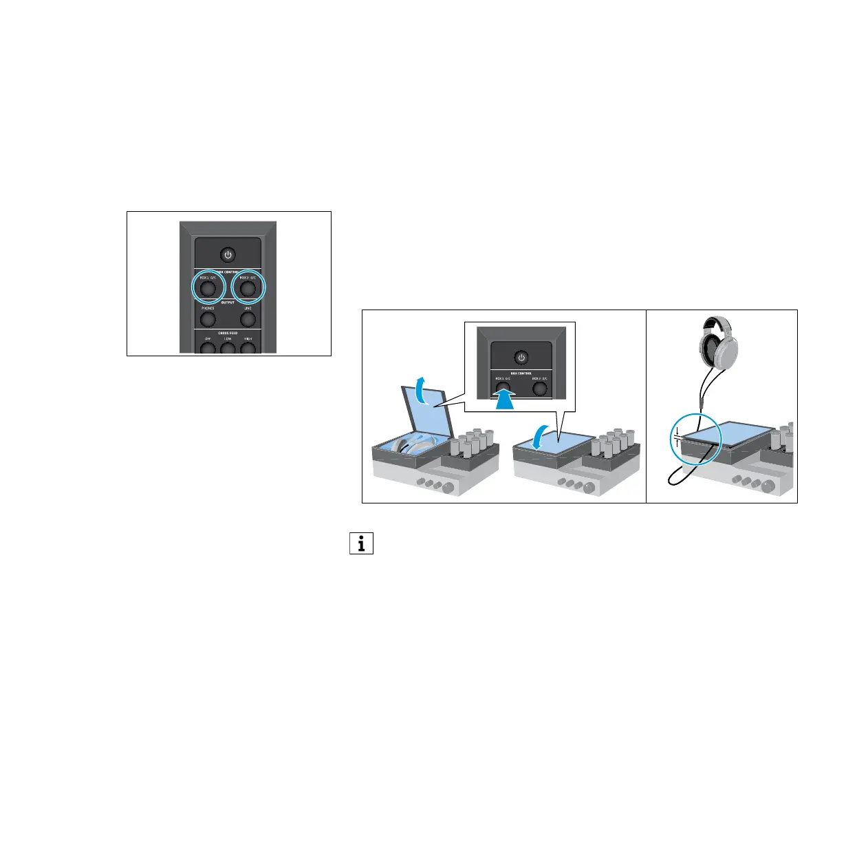 If the OUTPUT audio output is set to LINE, the headphone storage boxes