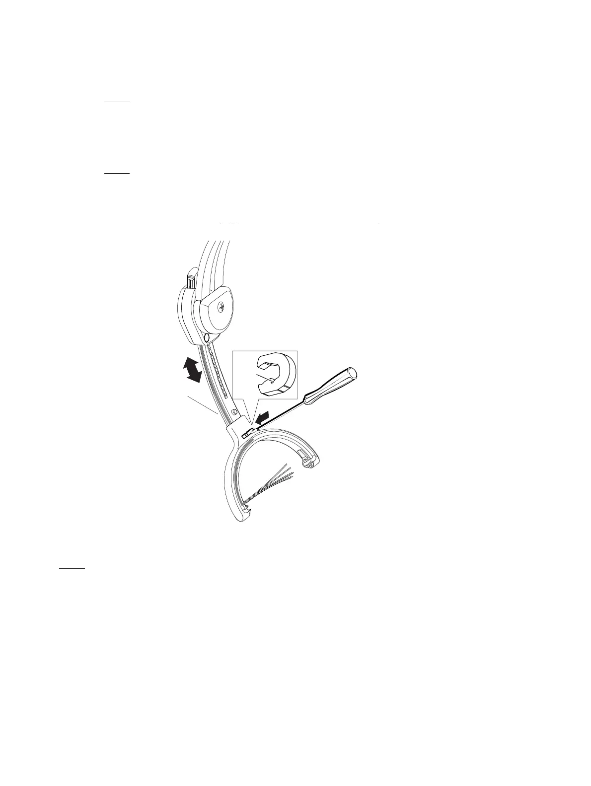 (b) Move the end piece of the headband (010) up and down. Ensure that the cable is