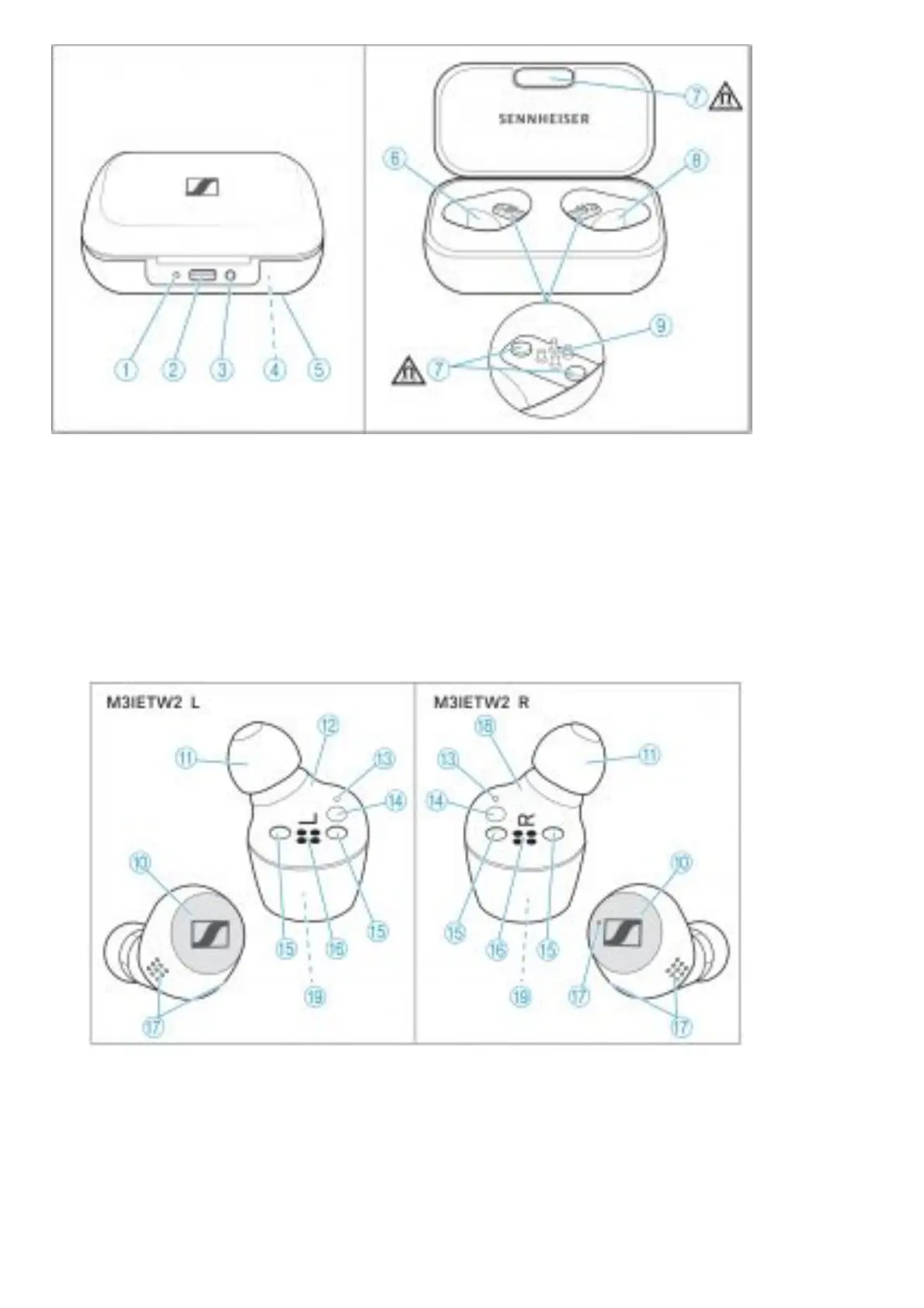 18. Right earbud R (master earbud, controls the Bluetooth connection to the smartphone and to the