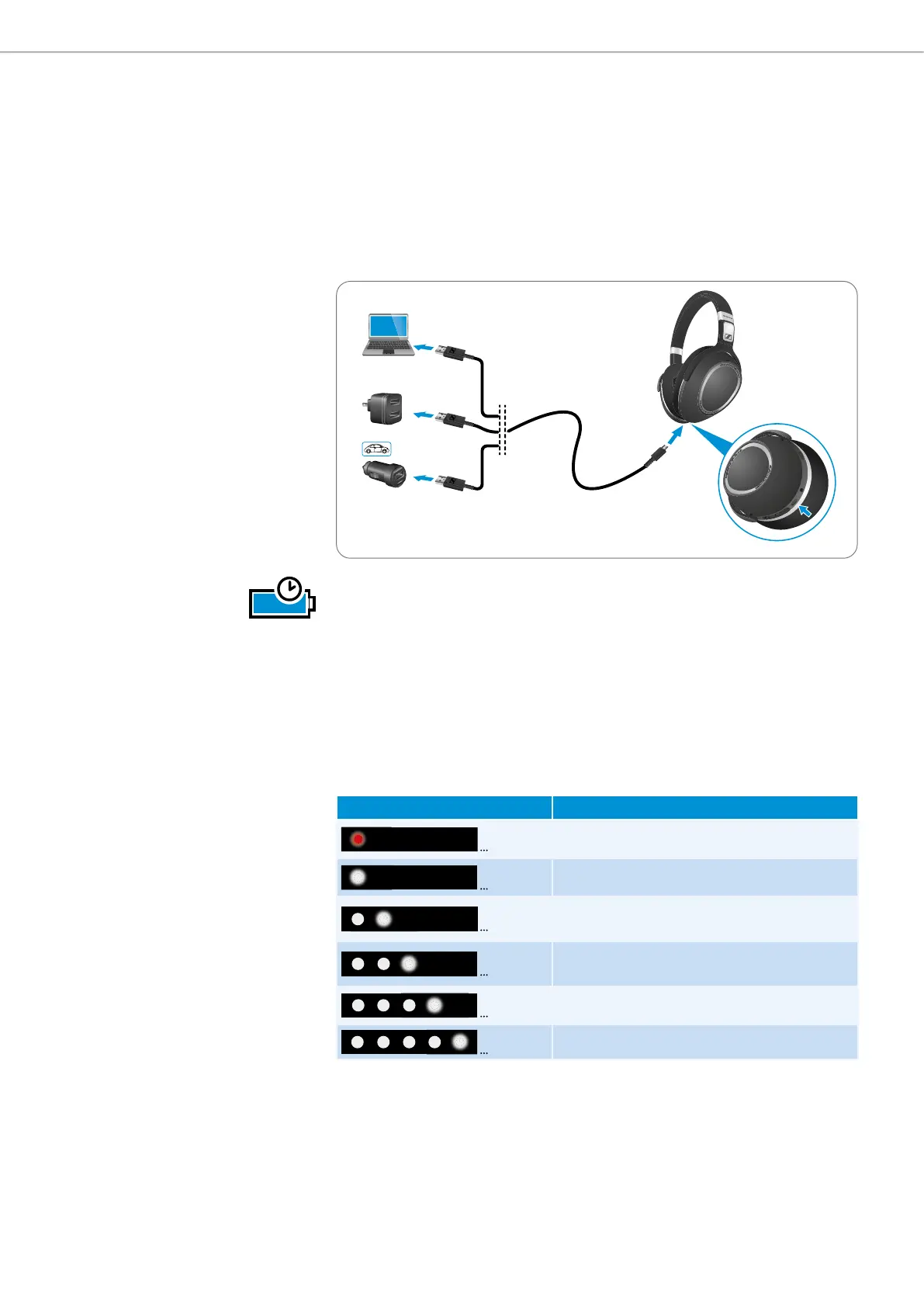 A complete charging cycle takes about 3 hours. Before using the headset for the
