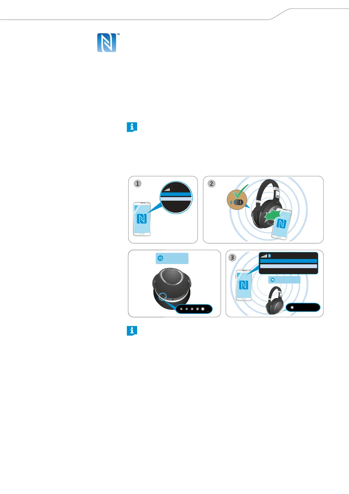 2. Scan the smartphone to the NFC panel on the left ear cup of the headset.