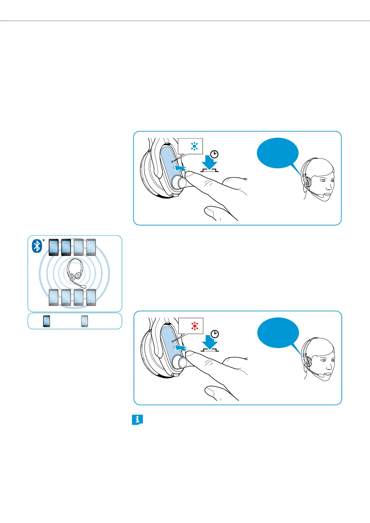 After switch-on, the headset automatically tries to connect to the two last con-