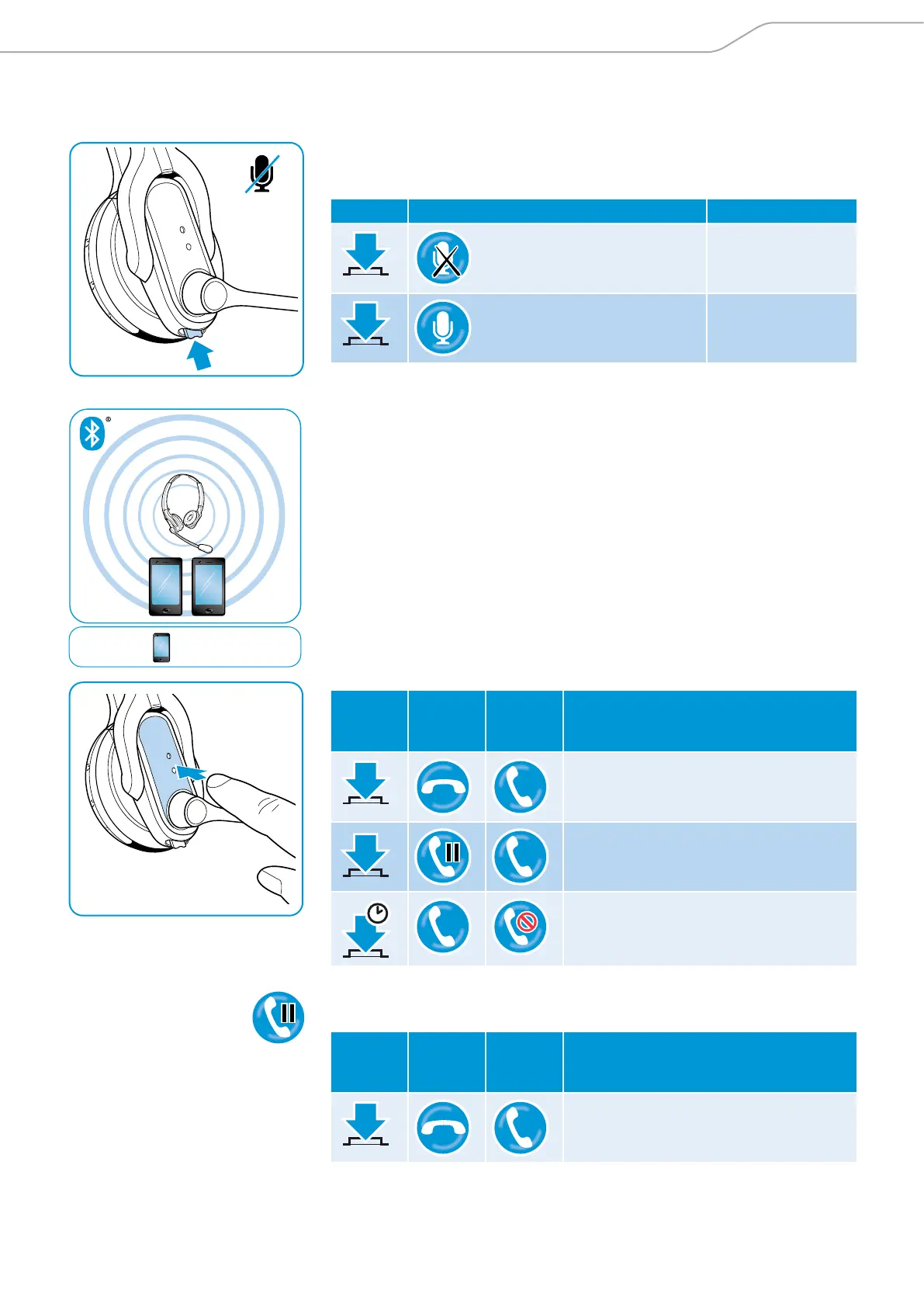 The headset‘s microphone is muted. During the muting, the Link LED flashes