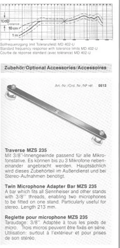 Sennheiser MD 402-U - Optional Accessories; Twin Microphone Adapter Bar MZS 235