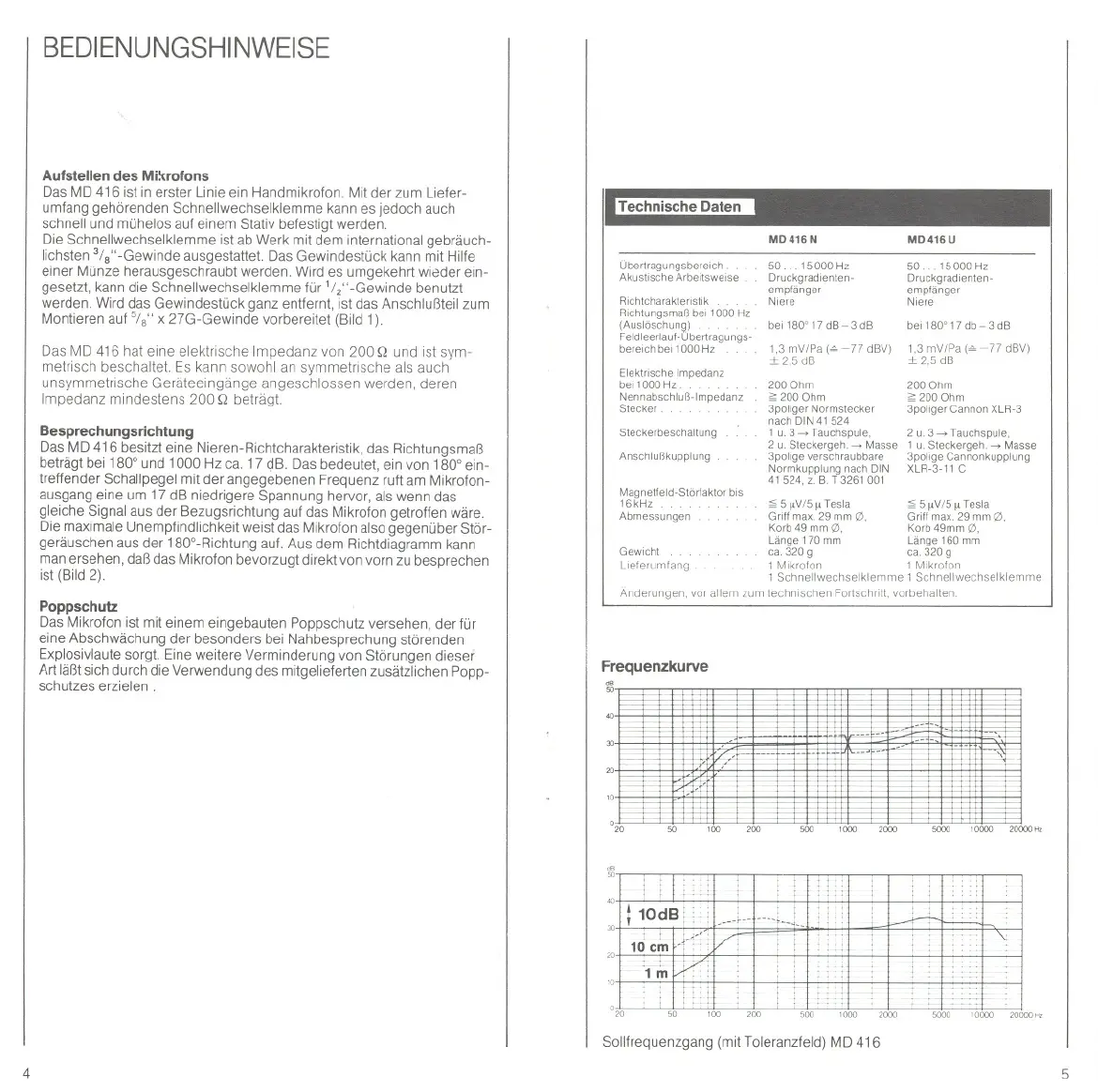 Das MD 416 hat eine elektrische Impedanz von 200 Q und ist sym-