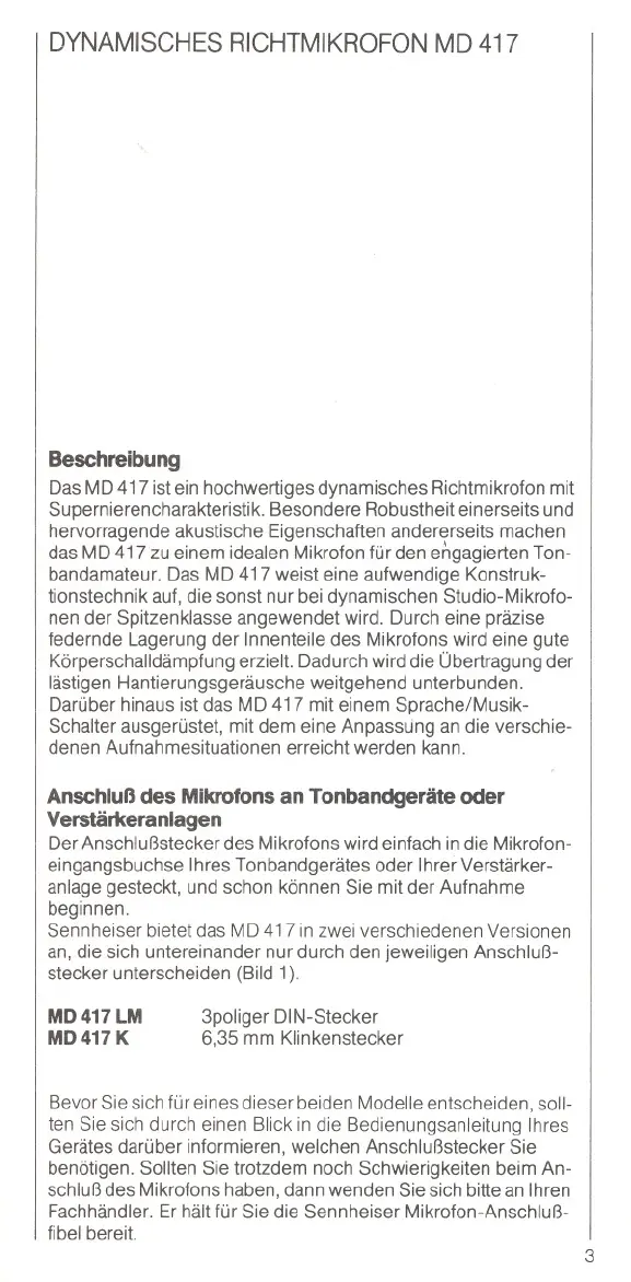 Senn heiser bietet das MD 417 in zwei verschiedenen Versionen