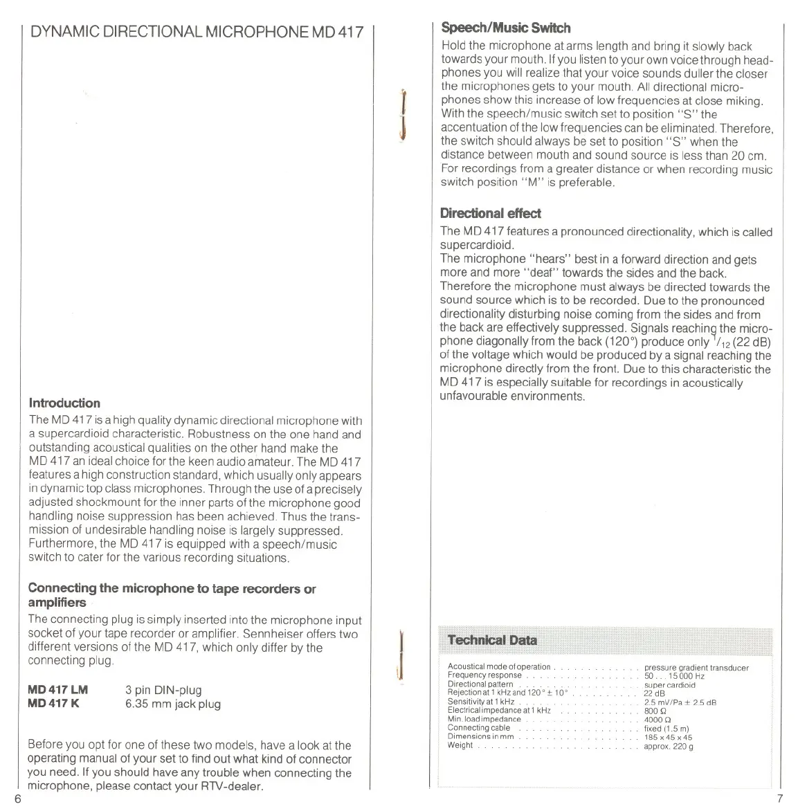 The MD 417 is a high quality dynamic directional microphone with