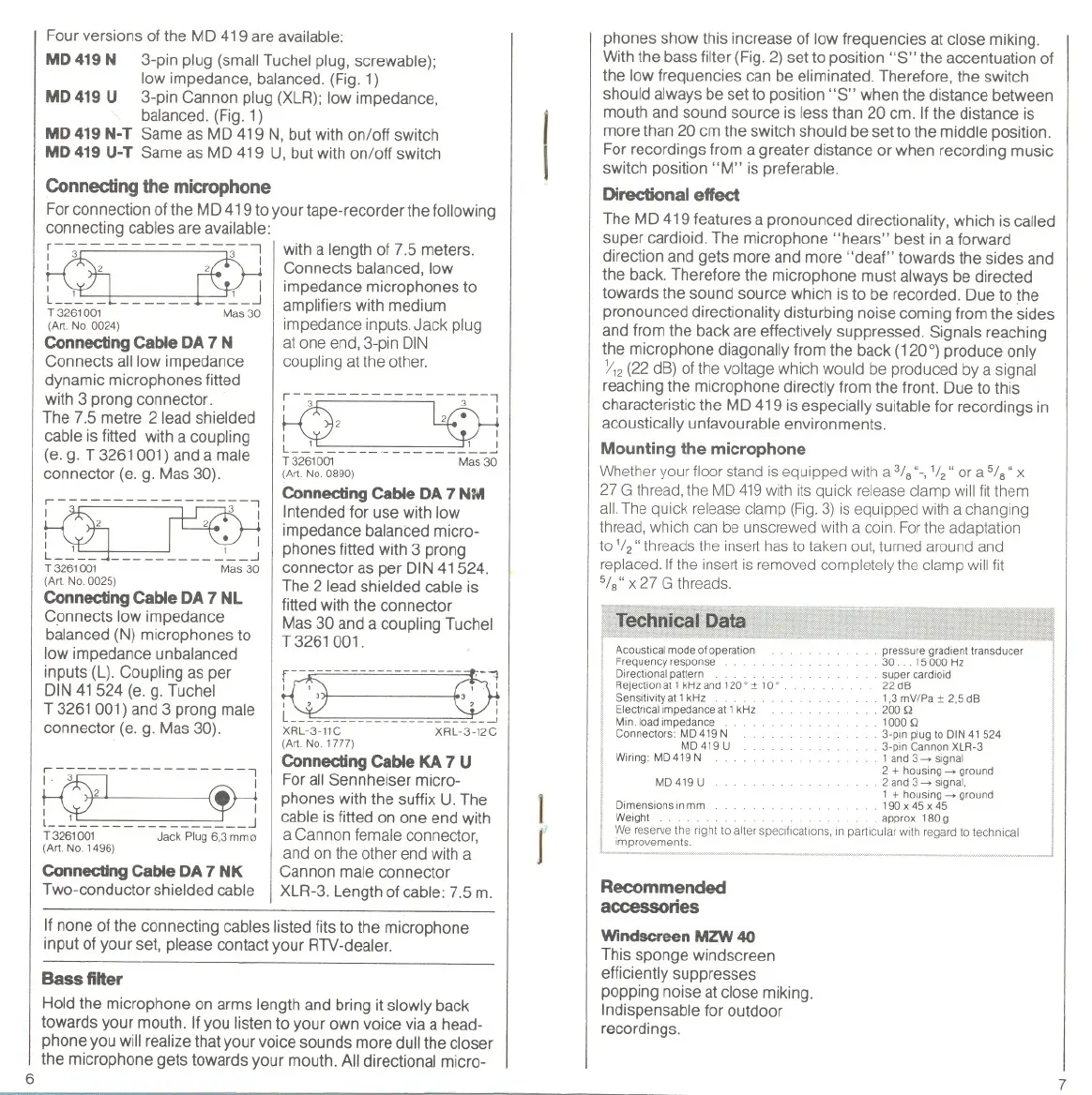 MD 419 U 3-pin Cannon plug (XLR); low impedance,