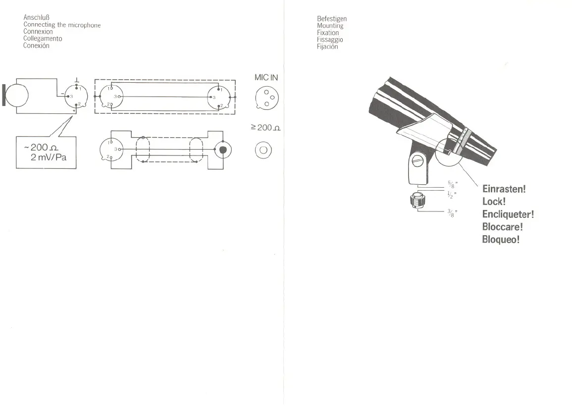 Sennheiser MD 422 - Connection and Mounting; Microphone Connection; Microphone Mounting